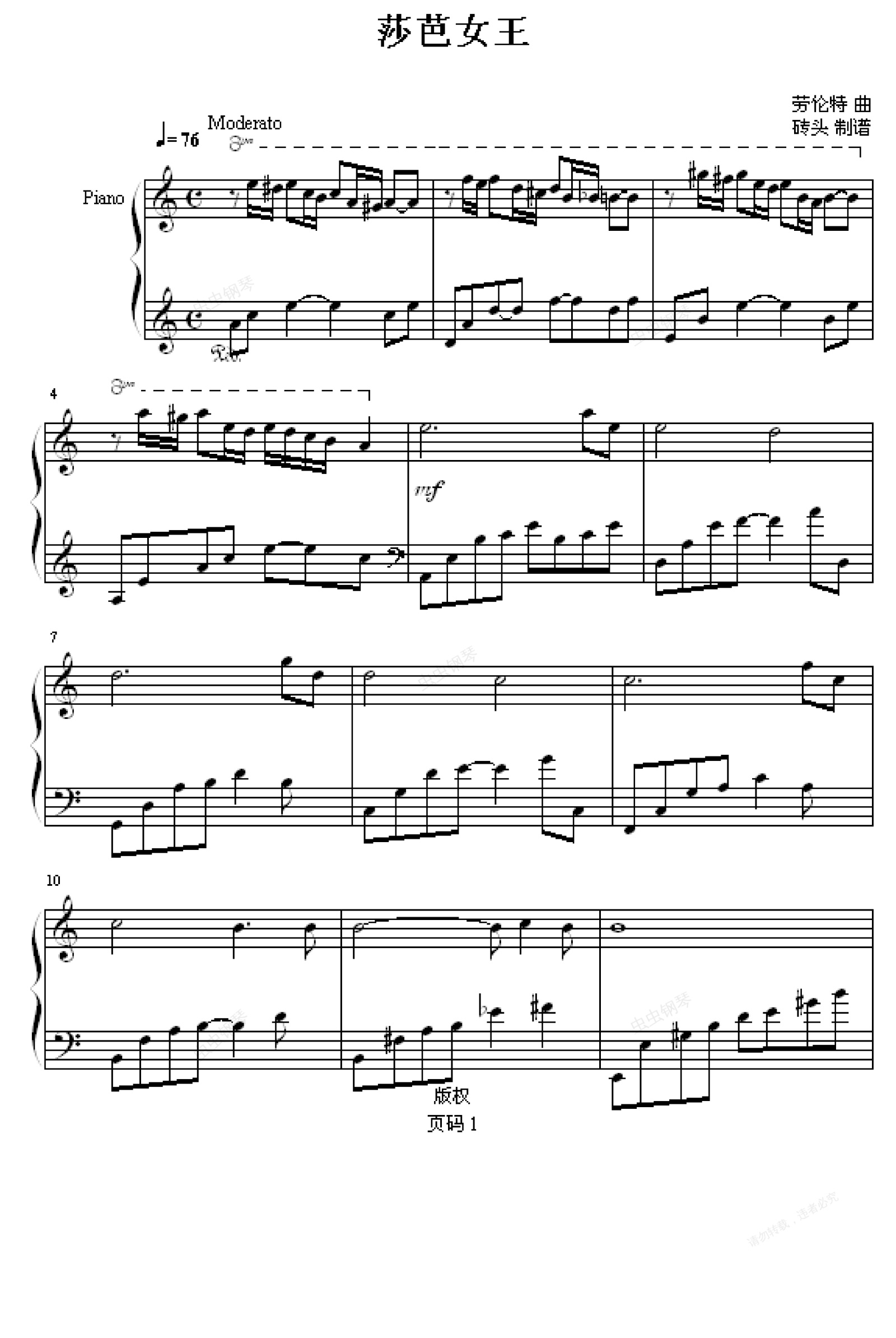 钢琴谱:莎芭女王-砖头版