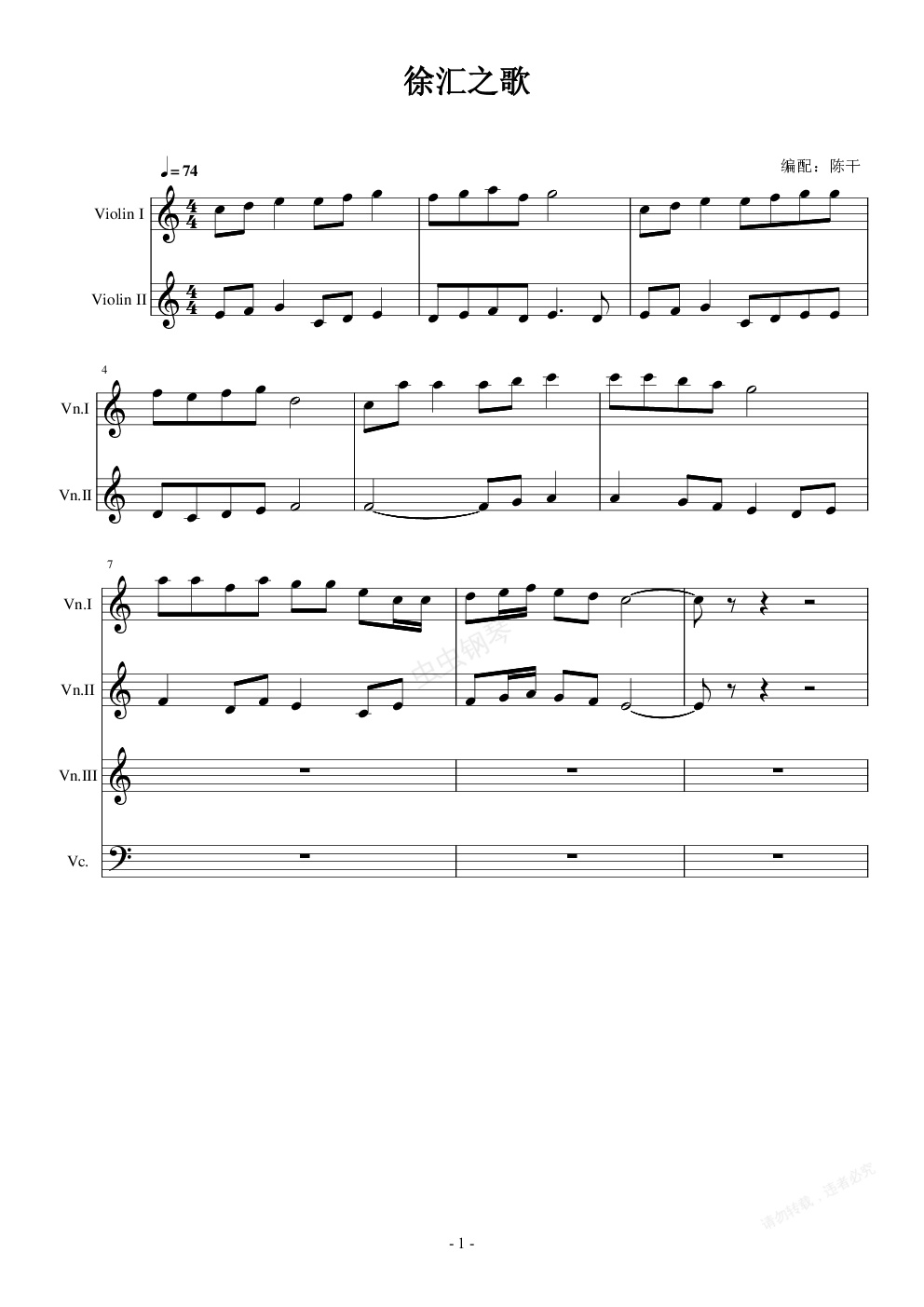 钢琴谱:徐汇之歌(弦乐改编版)