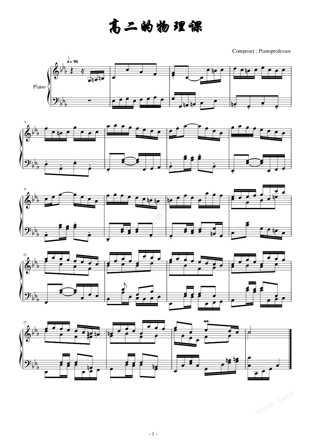 钢琴谱:高二的物理课-雷死不偿命第五弹