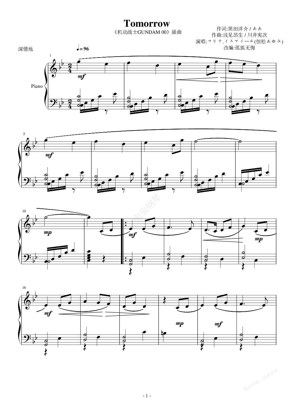 钢琴谱:高达00tomorrow