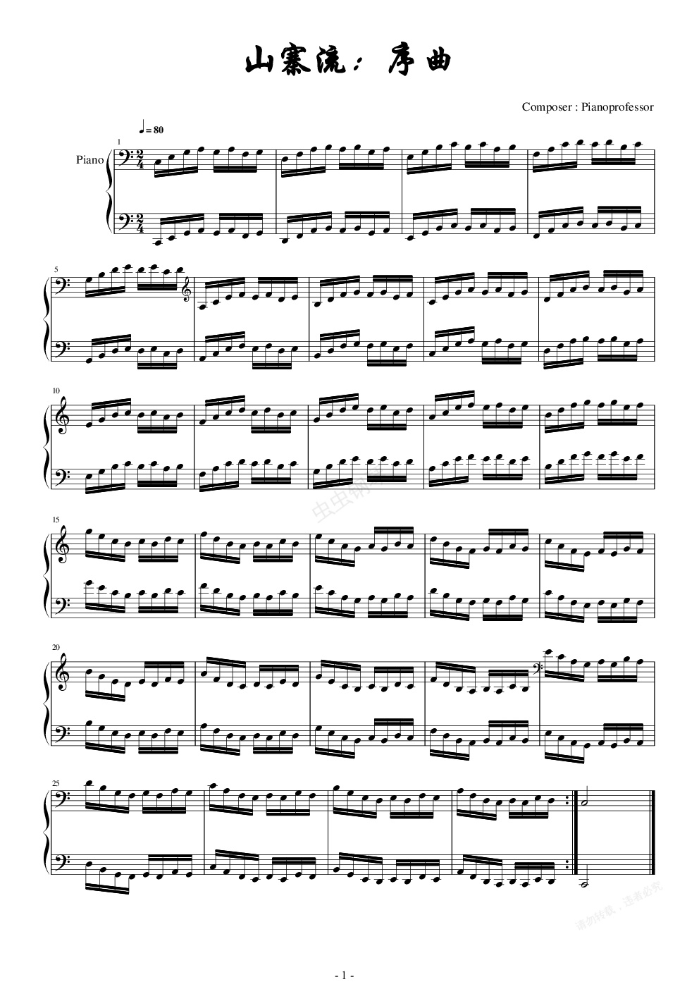 钢琴谱:山寨流:序曲-雷死不偿命第九弹