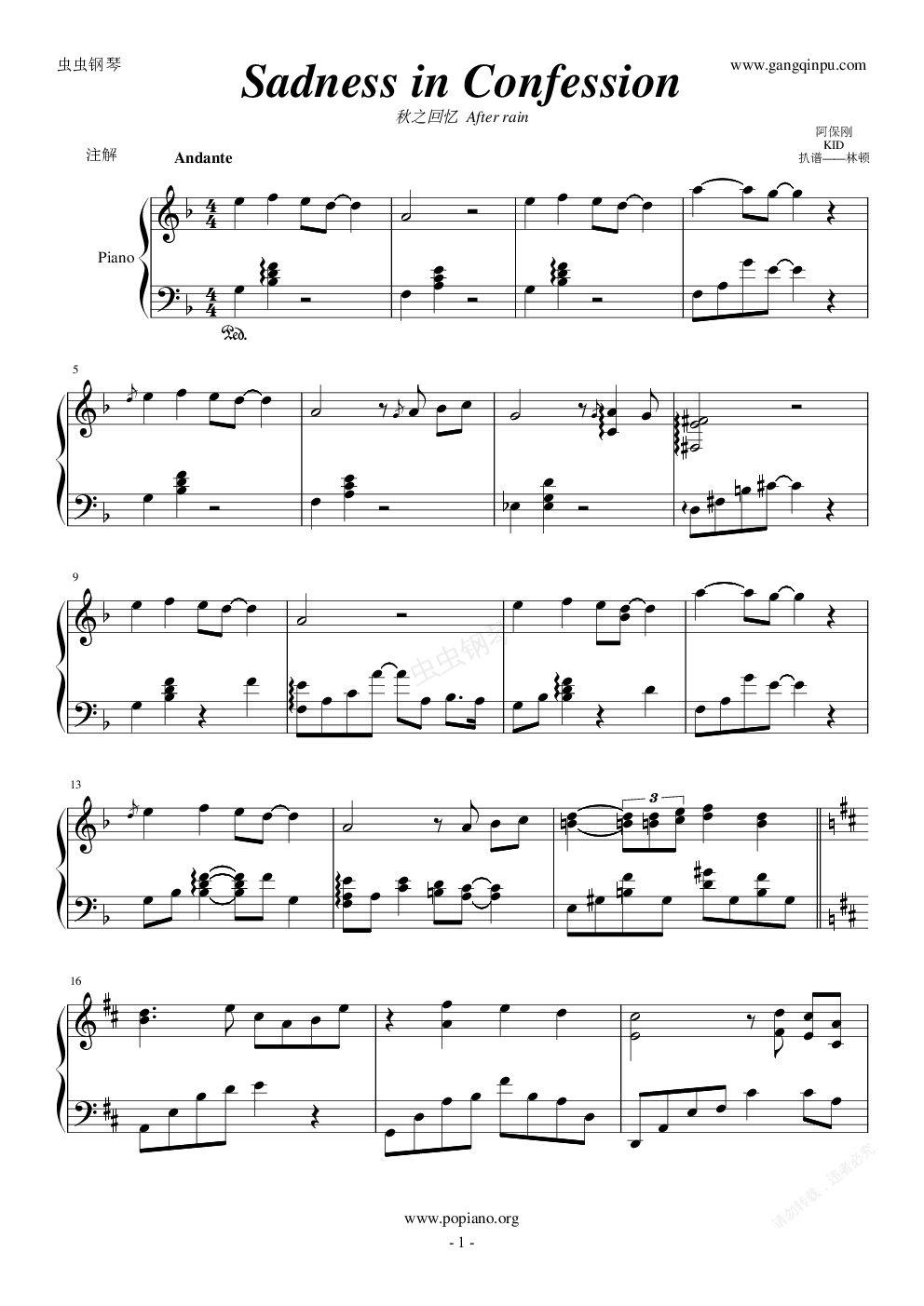 第一次扒谱。此曲为三上智也在雨后中的背景音乐,孤独忧伤,一个人在房间想念彩花时会播此曲