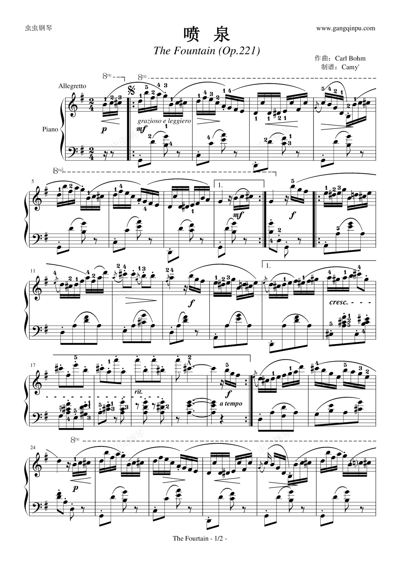 非常好听,生动活泼的一首曲子。 作曲:卡尔博姆 Carl Bohm (Karl) 第48小节有错误,左手漏了1组音符,右手,音高错误! 修改了一些指法,表情,和部分音符错误。已经重新上传Ove。