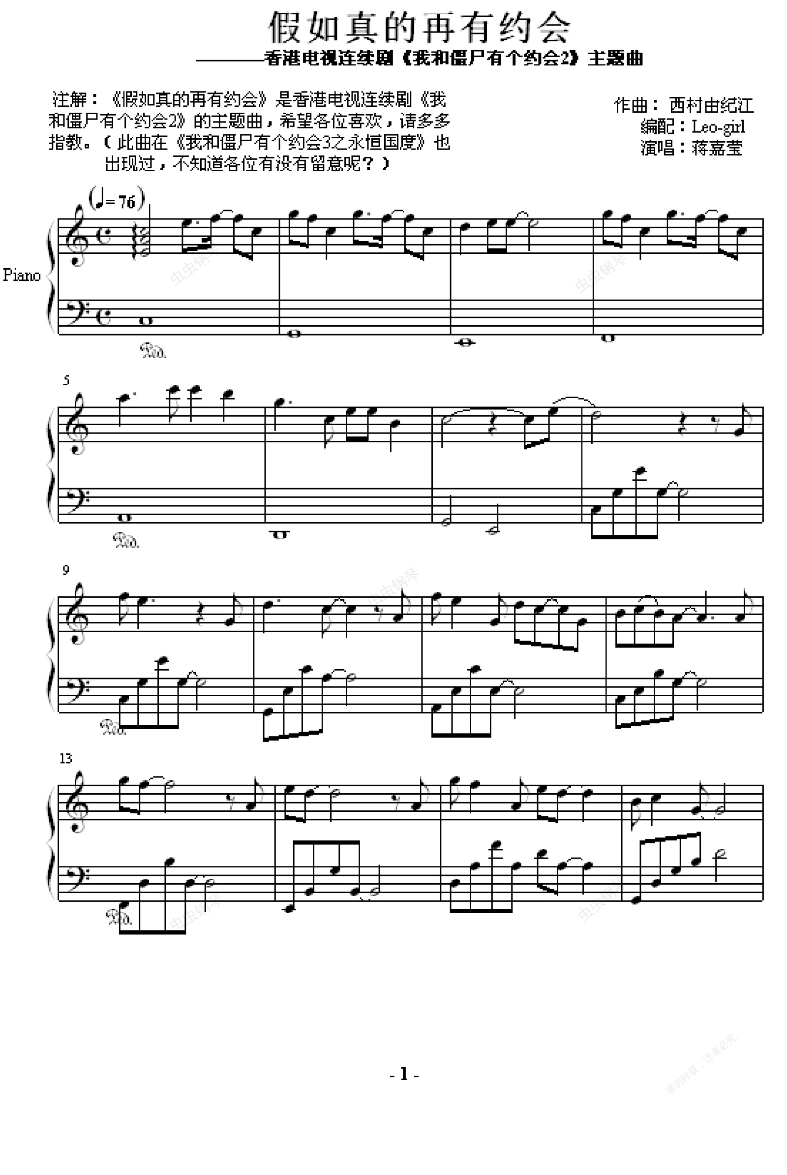 钢琴谱:假如真的再有约会-我和僵尸有个约会2主题曲