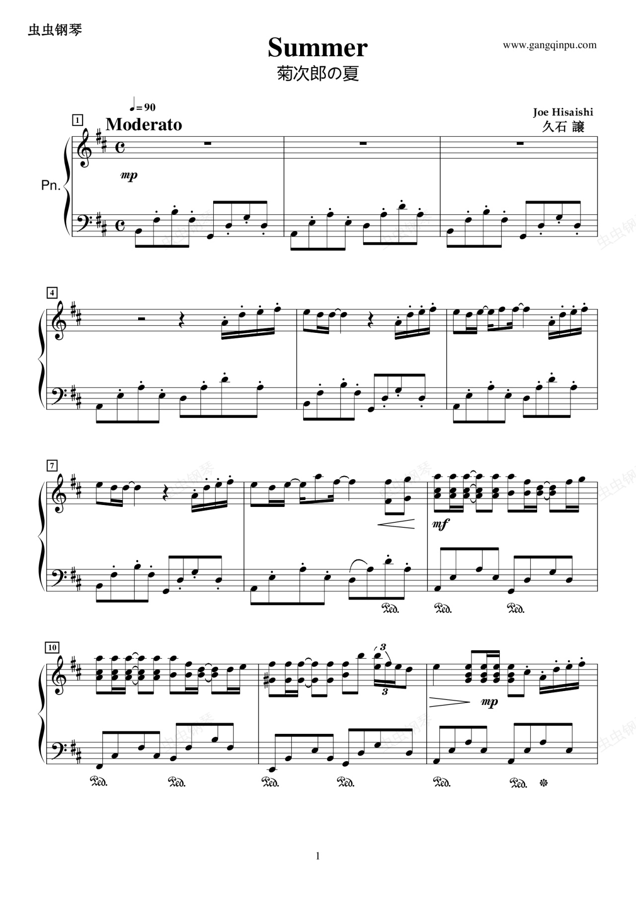 这个曲子我从6.28开始识谱,到现在也弹了一个半月了,灰常灰常地喜欢这首曲子,很有那种明媚清新的感觉,因此就在两三个的谱子的综合之上加上久石让先生本人弹奏录音、视频以及自己的理解推敲,花了近两周的时间制造出来了这个谱子(可谓用心良苦呵~~),可以当作一个权威版本。谱面依然是我的传统半巴赫主义风格,没有连线和指法以及谱子的名号,但有力度记号速度记号和踏板以及节拍还有音符((*^__^*) 嘻嘻 踏板是这首曲子仅次于旋律的关键所在呵 因此这次仔仔细细地标上了.的意思是依此类推 即按前面的样子半小节踩一次 到圆星号处暂停),希望各位喜欢and捧场呵。