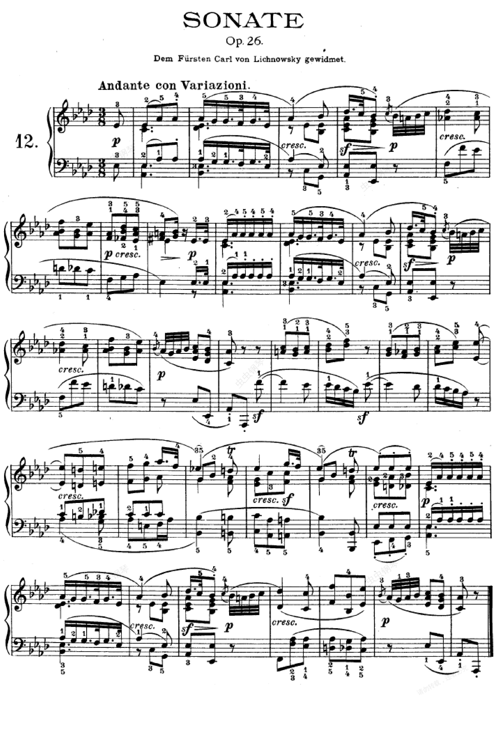 钢琴谱:第十二钢琴奏鸣曲-(Op.26)