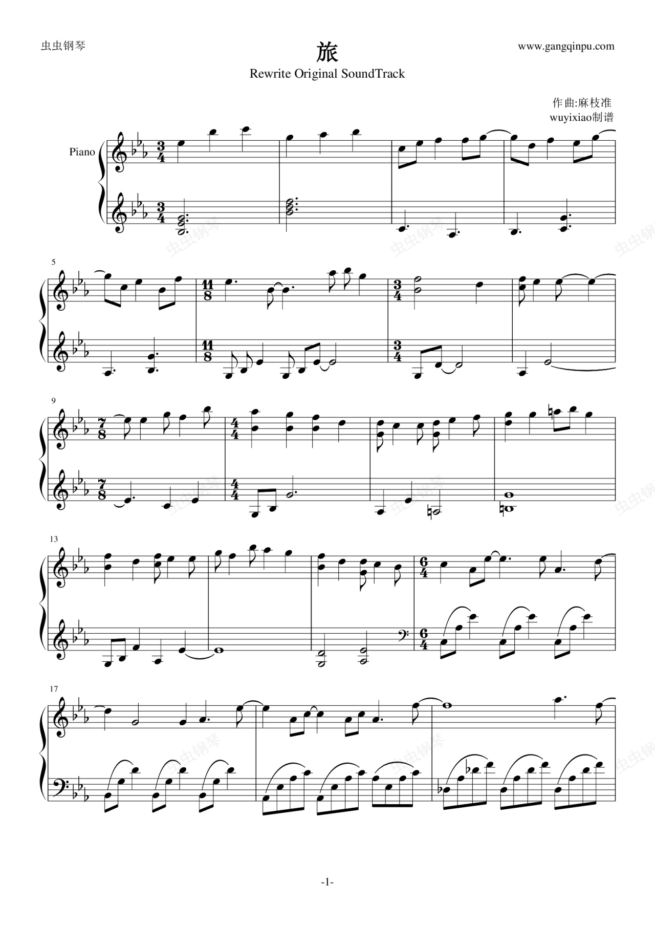 钢琴谱:旅(Rewrite-key社)