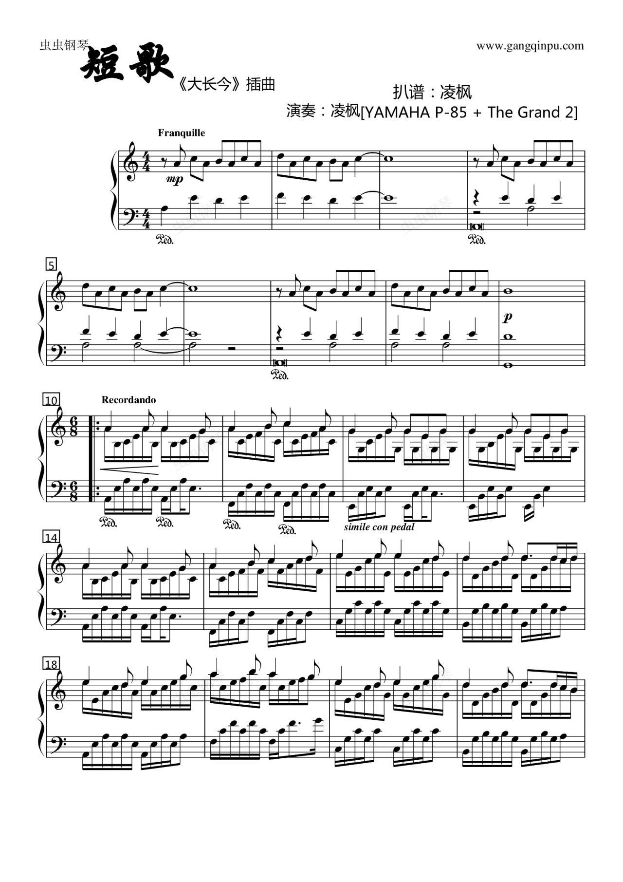 钢琴谱:短歌-插曲系列