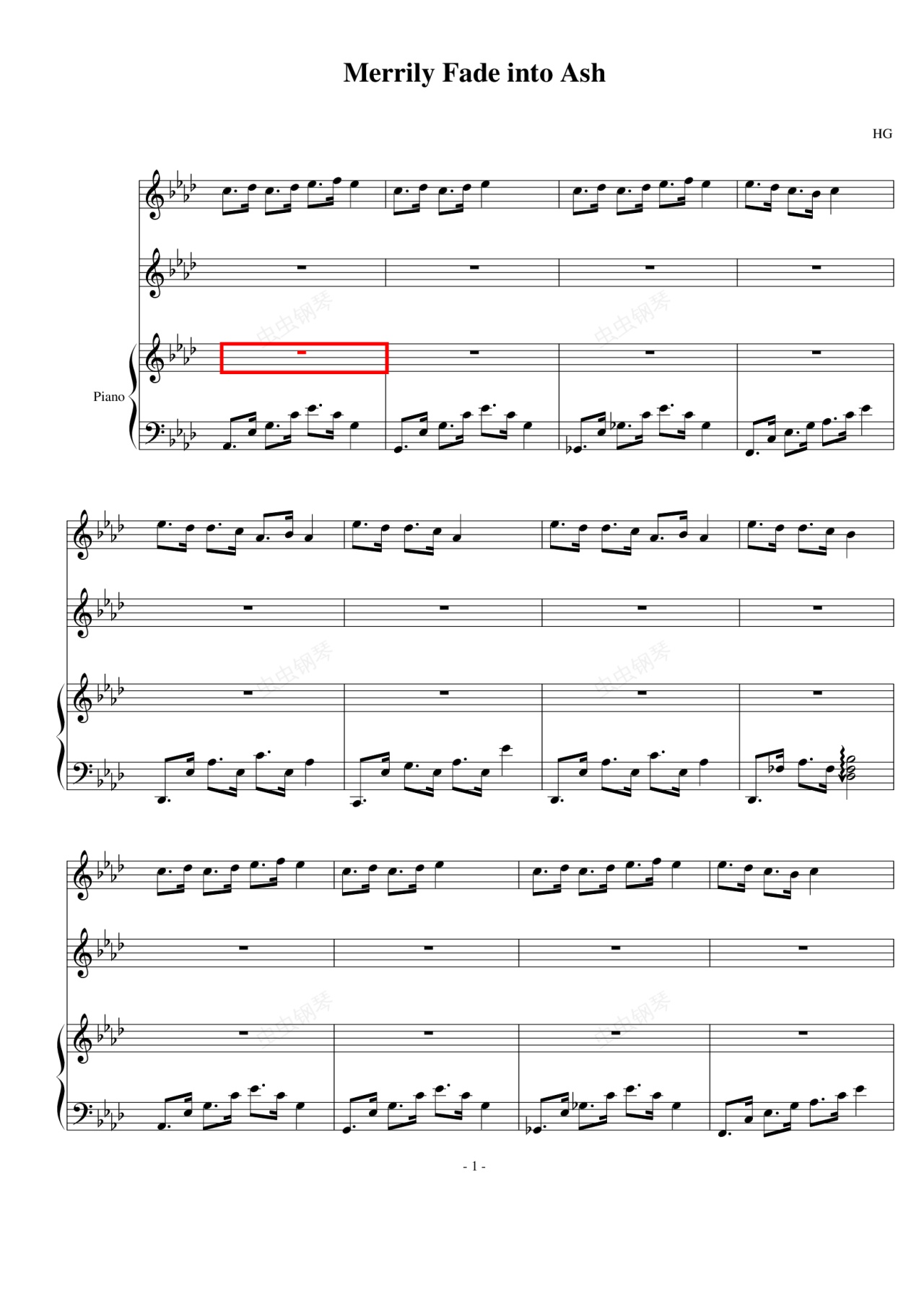 钢琴谱:Merrily Fade Into Ash