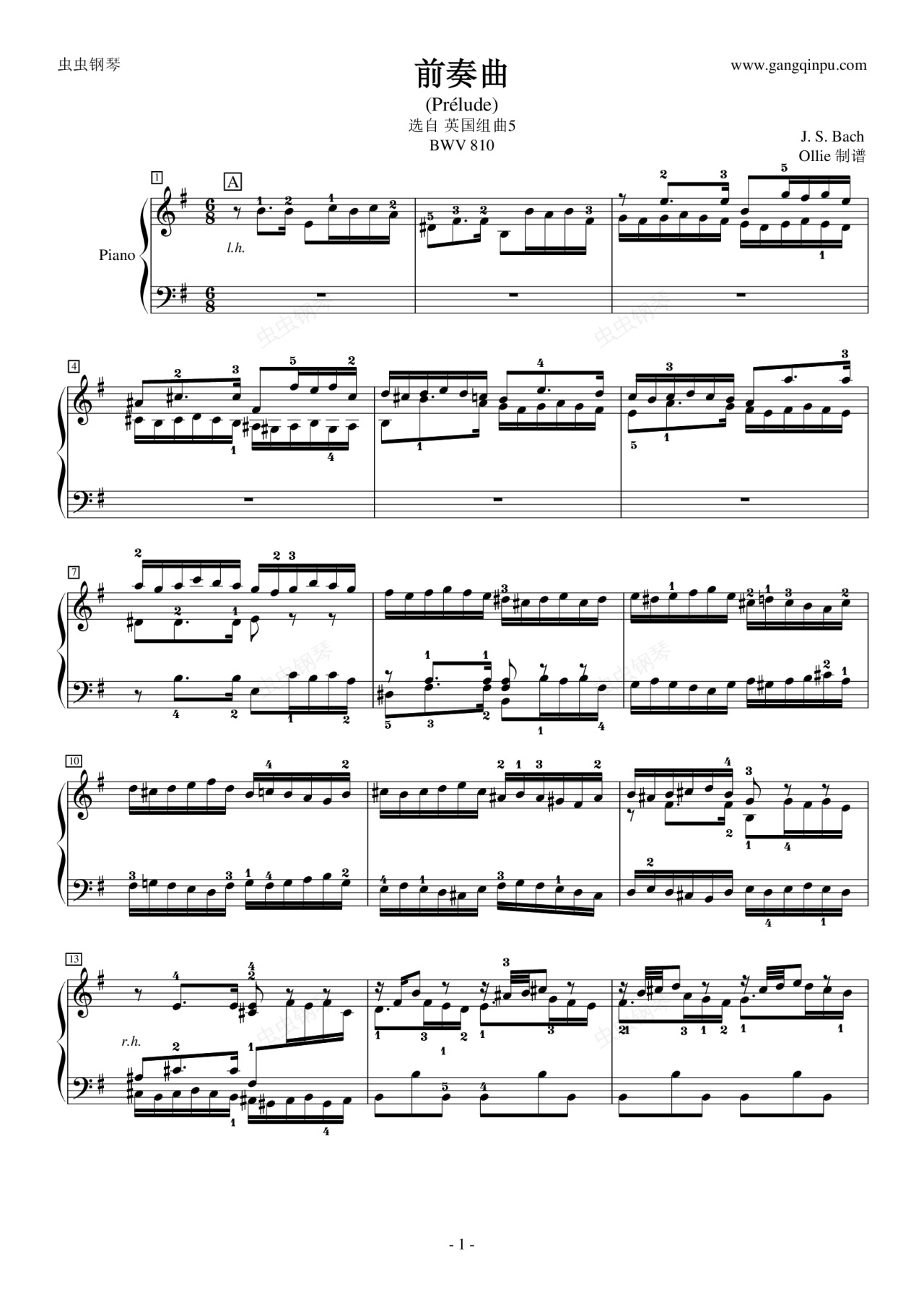 钢琴谱:前奏曲-英国组曲5