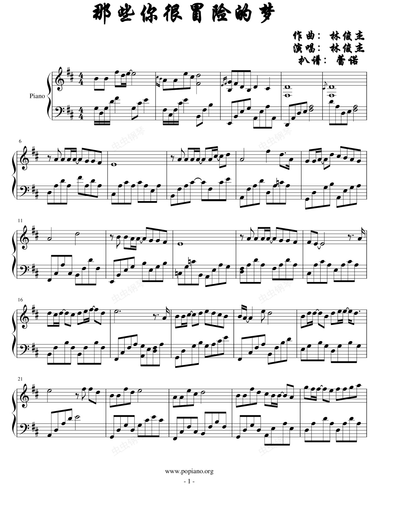 钢琴谱:那些你很冒险的梦