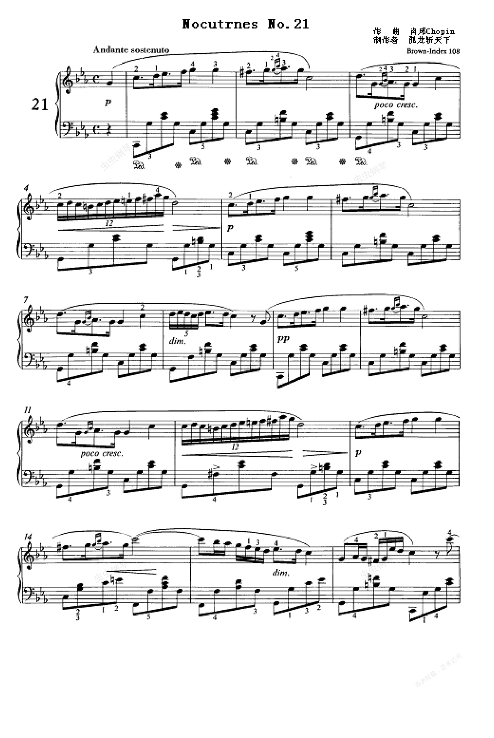 钢琴谱:夜曲21号作品 c小调(遗作)