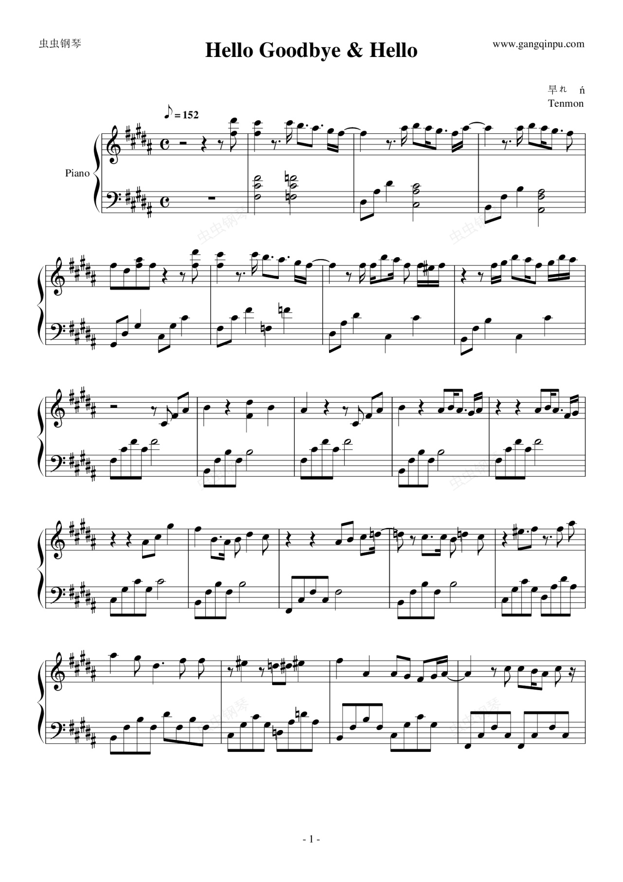 钢琴谱:追逐繁星的孩子 - Hello Goodbye & Hello 修改版