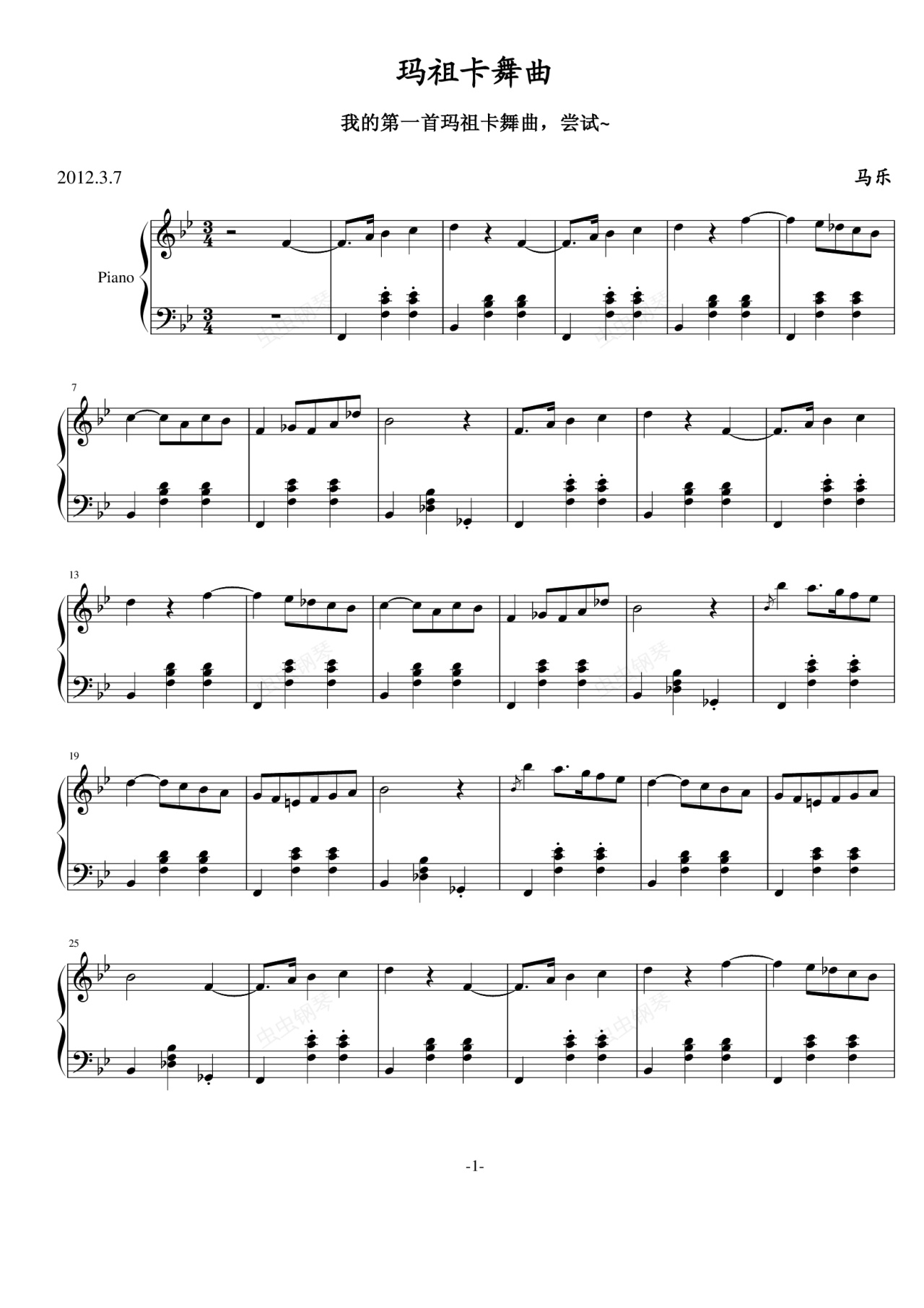 钢琴谱:玛祖卡舞曲