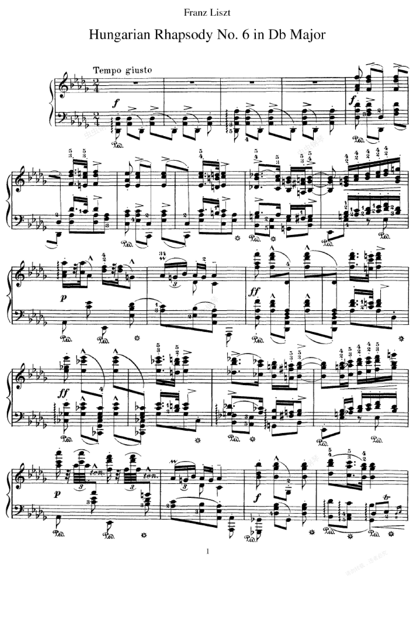 钢琴谱:匈牙利狂想曲第六号