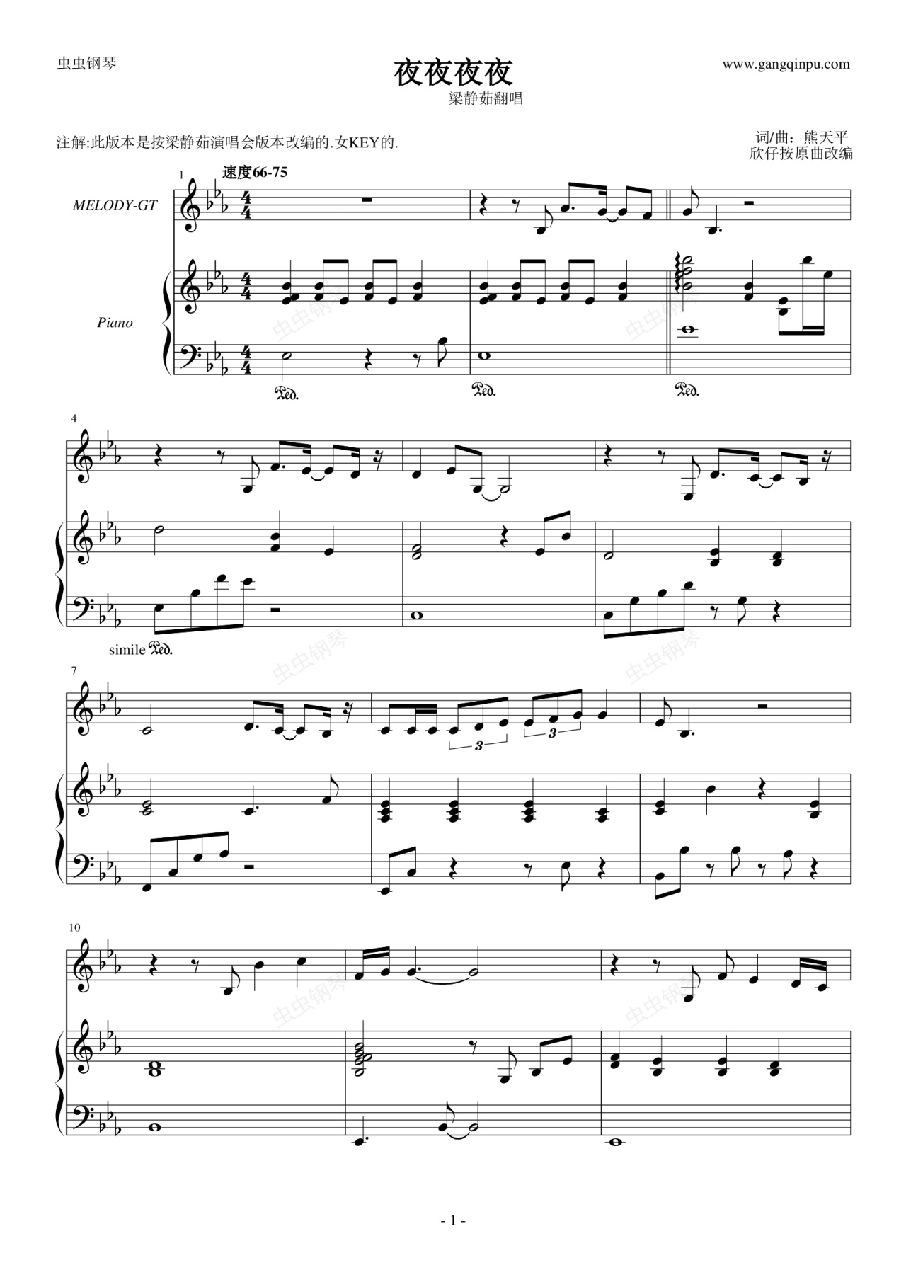 钢琴谱:夜夜夜夜(欣仔制作弹唱版)
