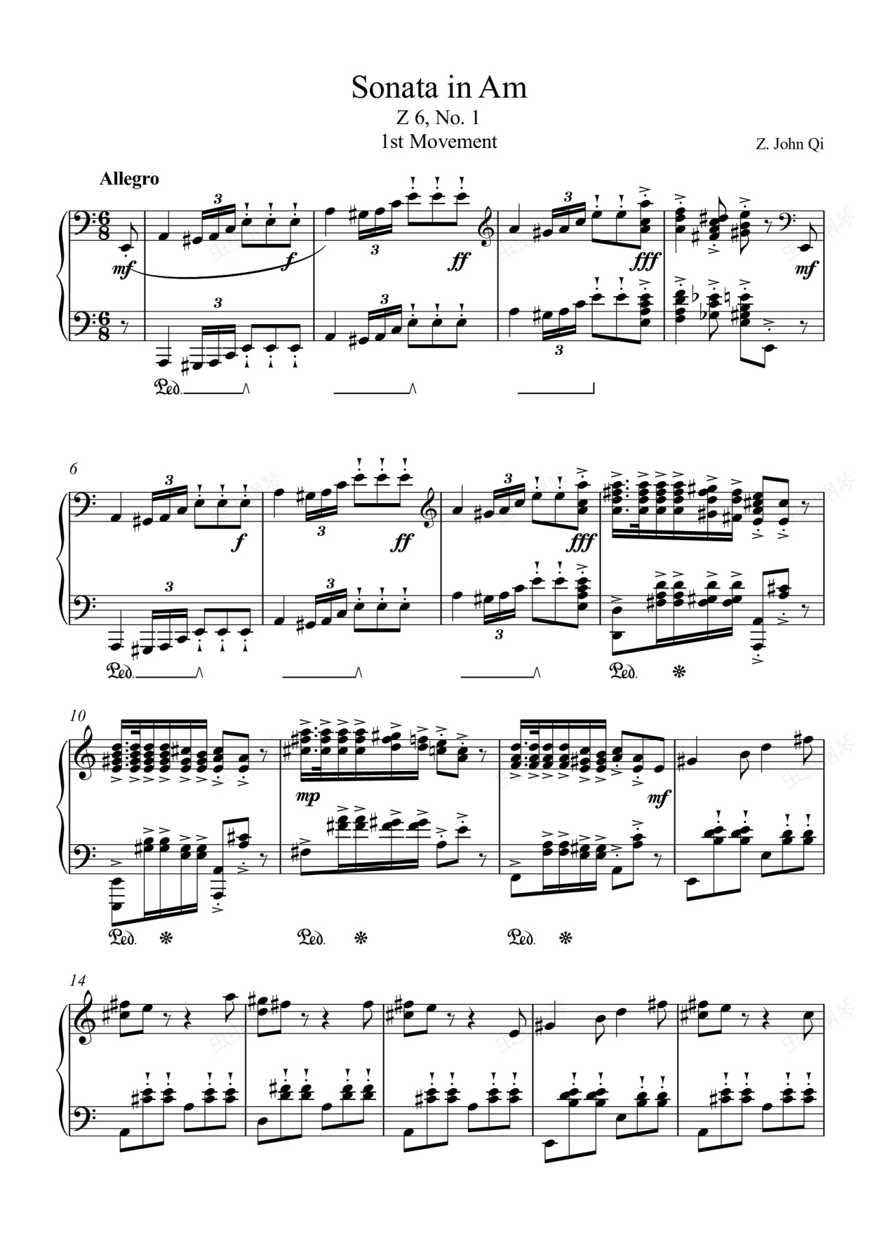 钢琴谱:Z6 - Sonata No. 1 in Am - 1st Movement
