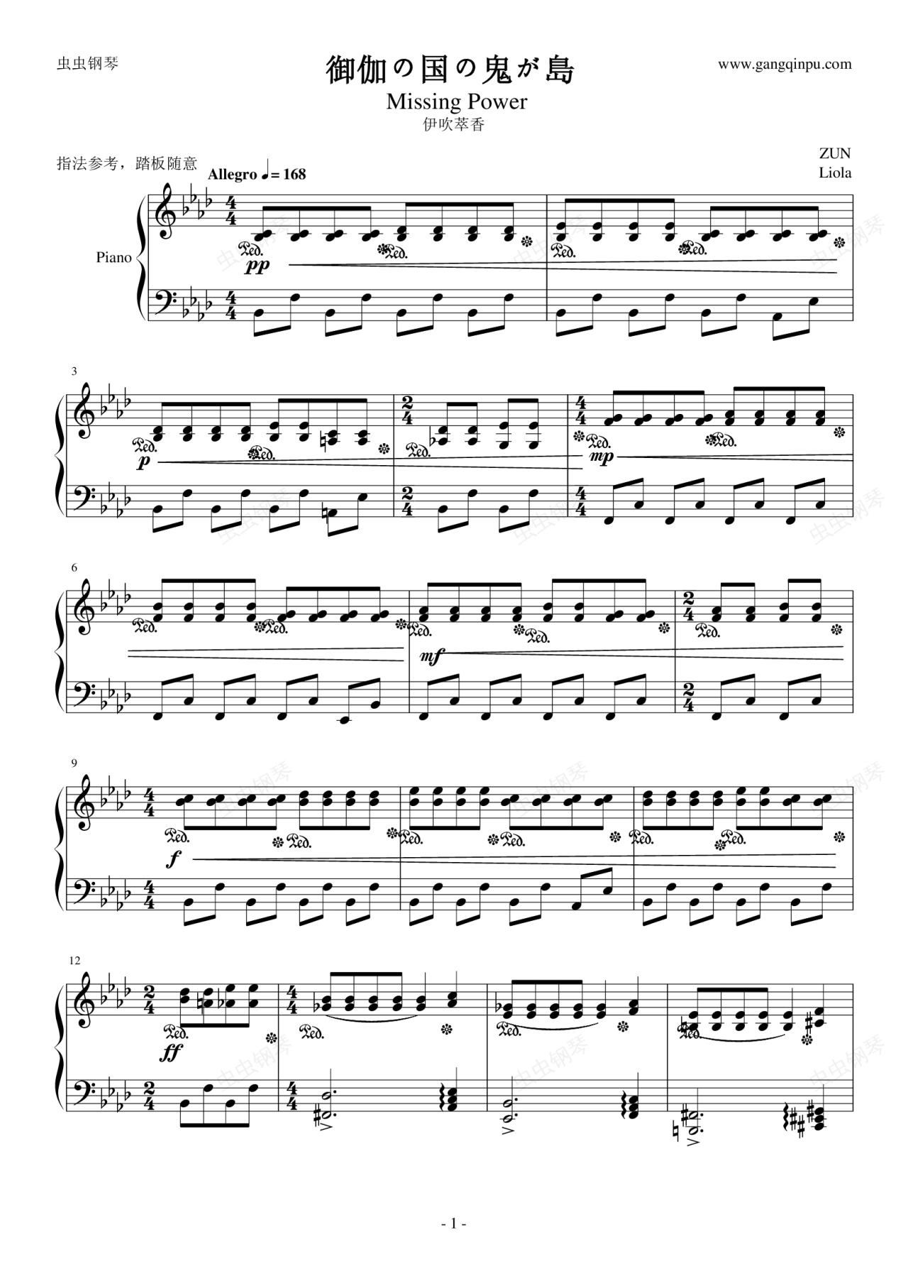 钢琴谱:【东方萃梦想】御伽の国の鬼が岛 ~ Missing Power