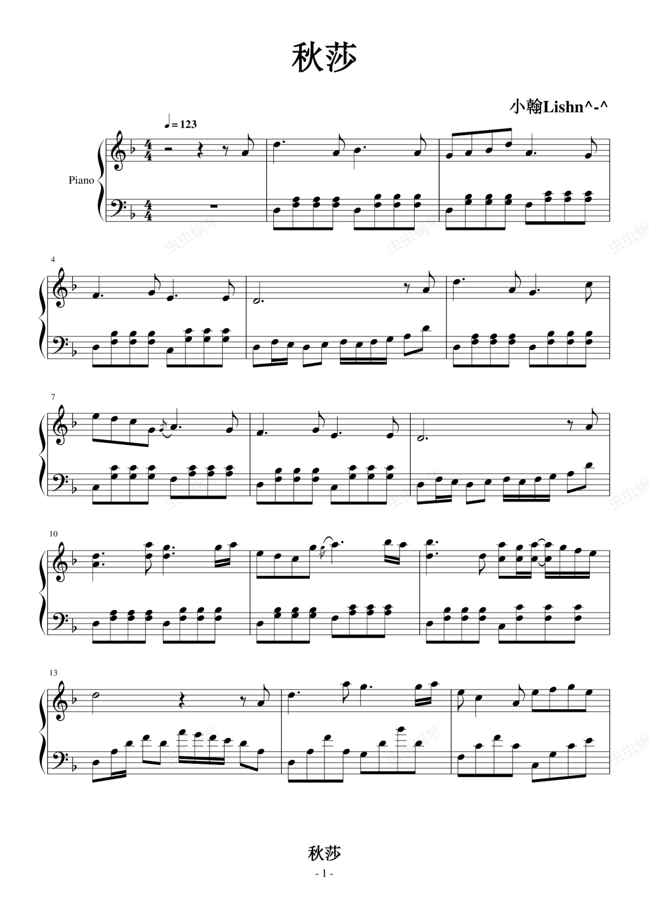 钢琴谱:秋莎