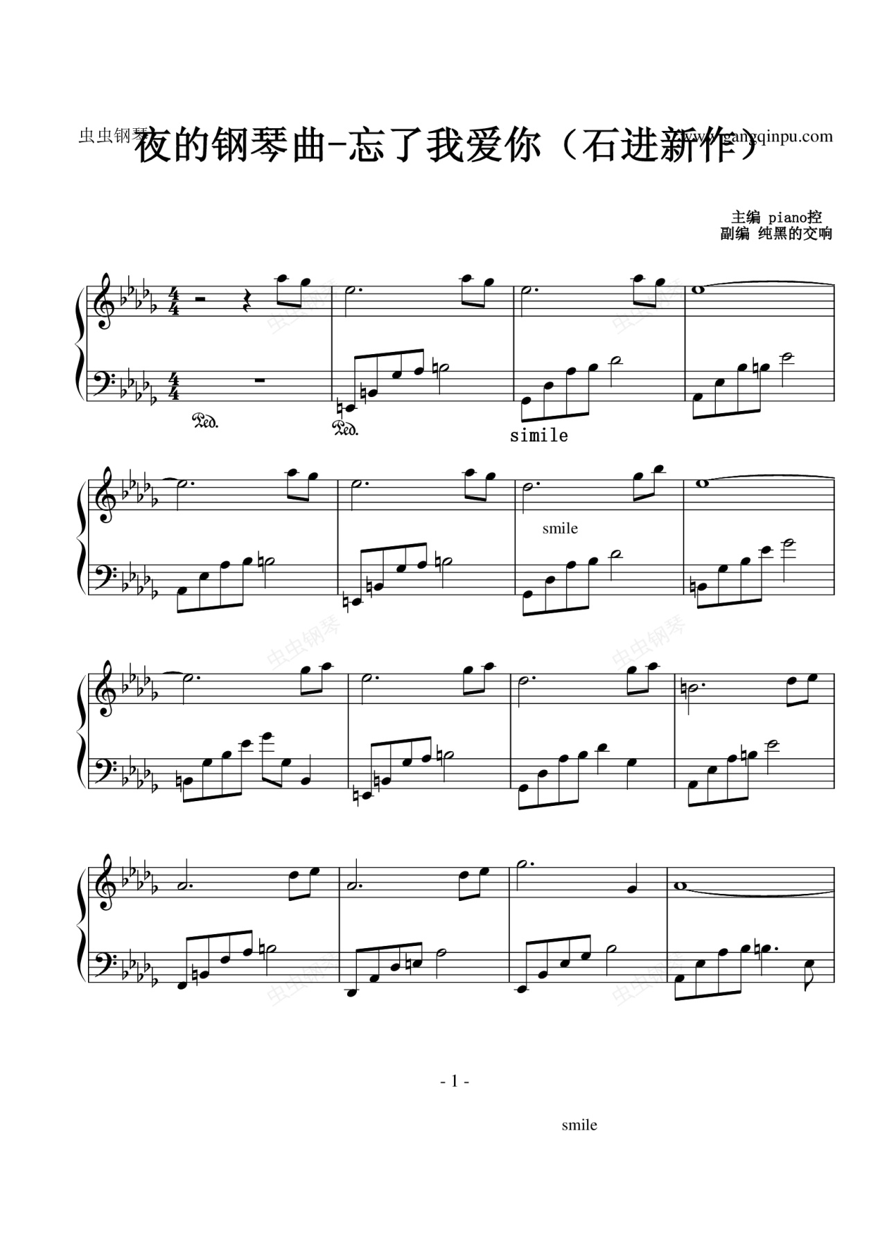 钢琴谱:夜的钢琴曲-忘了我爱你(石进新作)