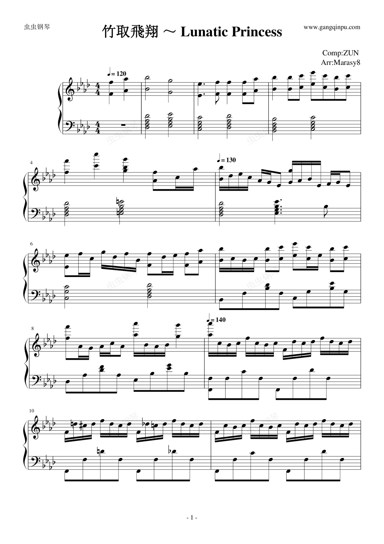 钢琴谱:触手猴(Marasy8)竹取飛翔 ~ Lunatic Princess