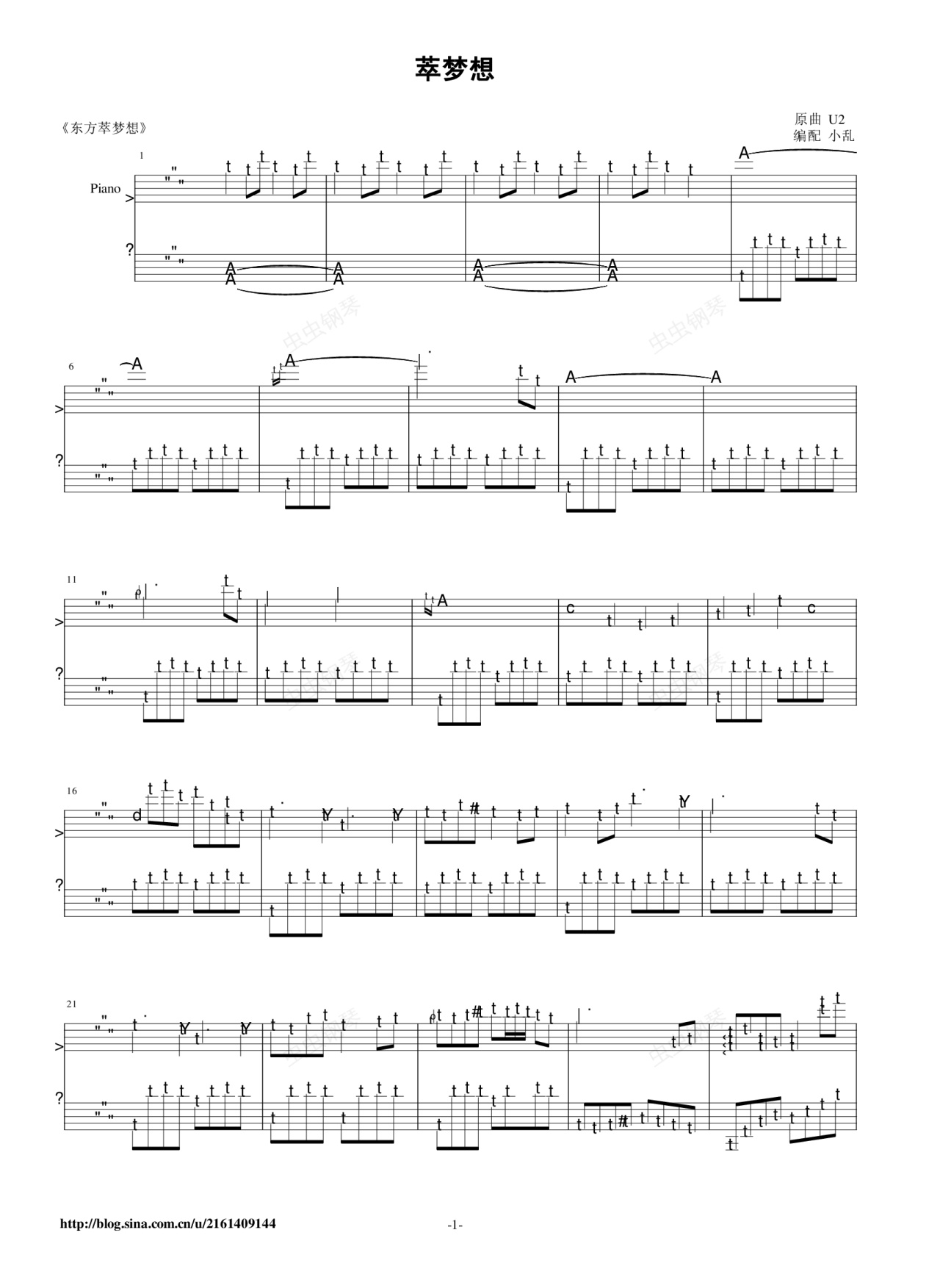 又一首略抒情的 ……它叫萃梦想,不是东方萃梦想更不是碎月。东方萃梦想和碎月都是U2的编曲   难度不大~有爱可学