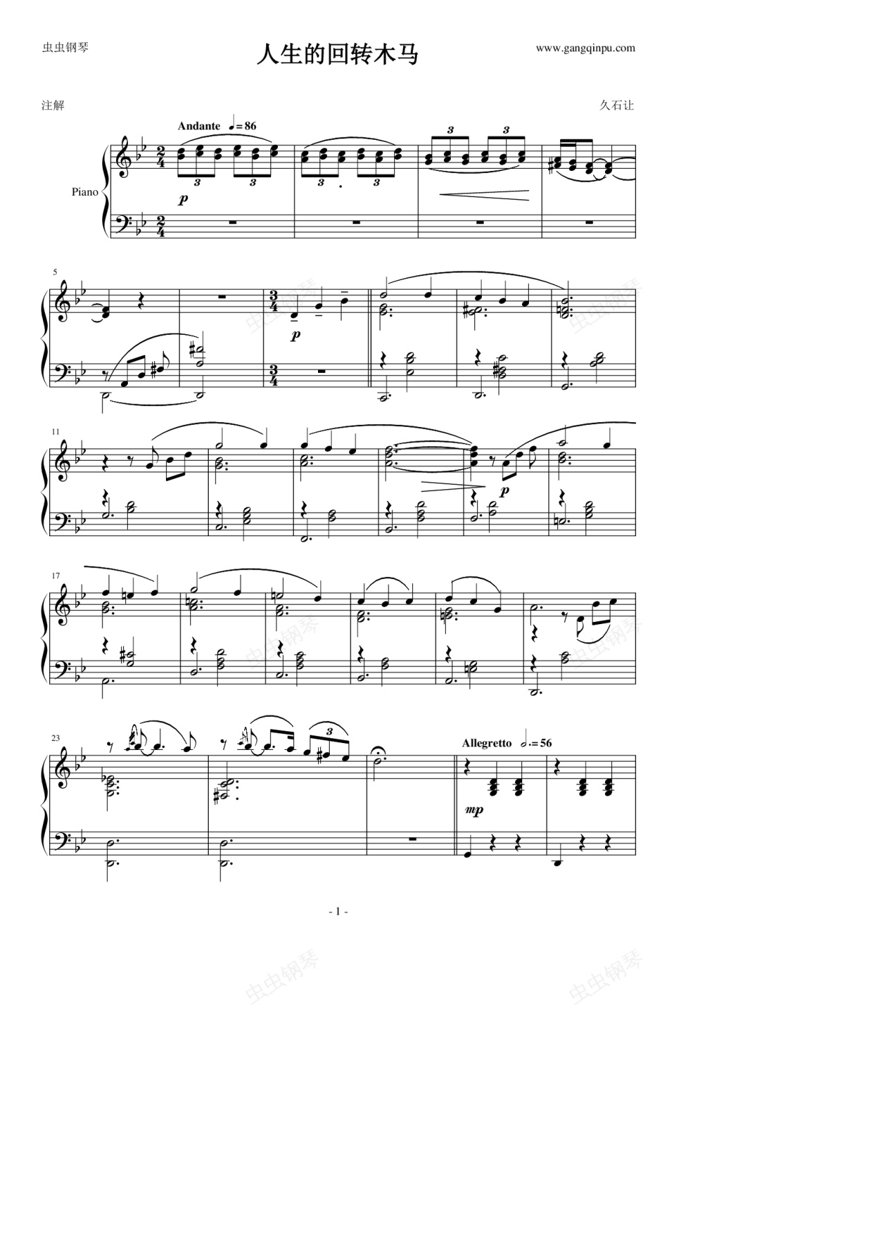 钢琴谱:人生的回转木马