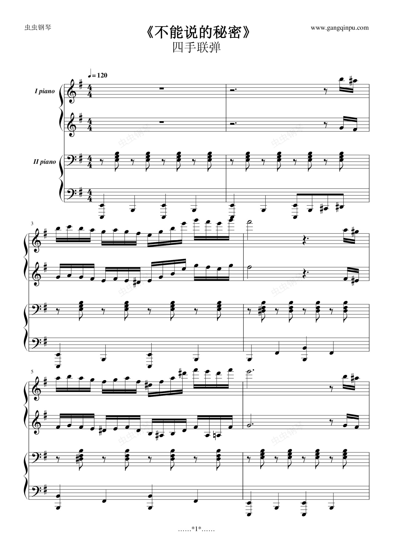 钢琴谱:不能说的秘密四手联弹(非交叉手,简易版)