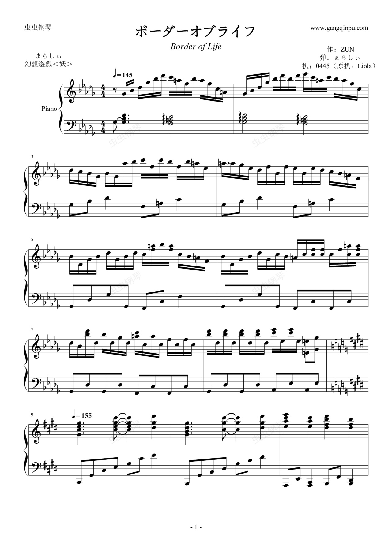 钢琴谱:【东方妖妖梦】【触手猴】ボーダーオブライフ