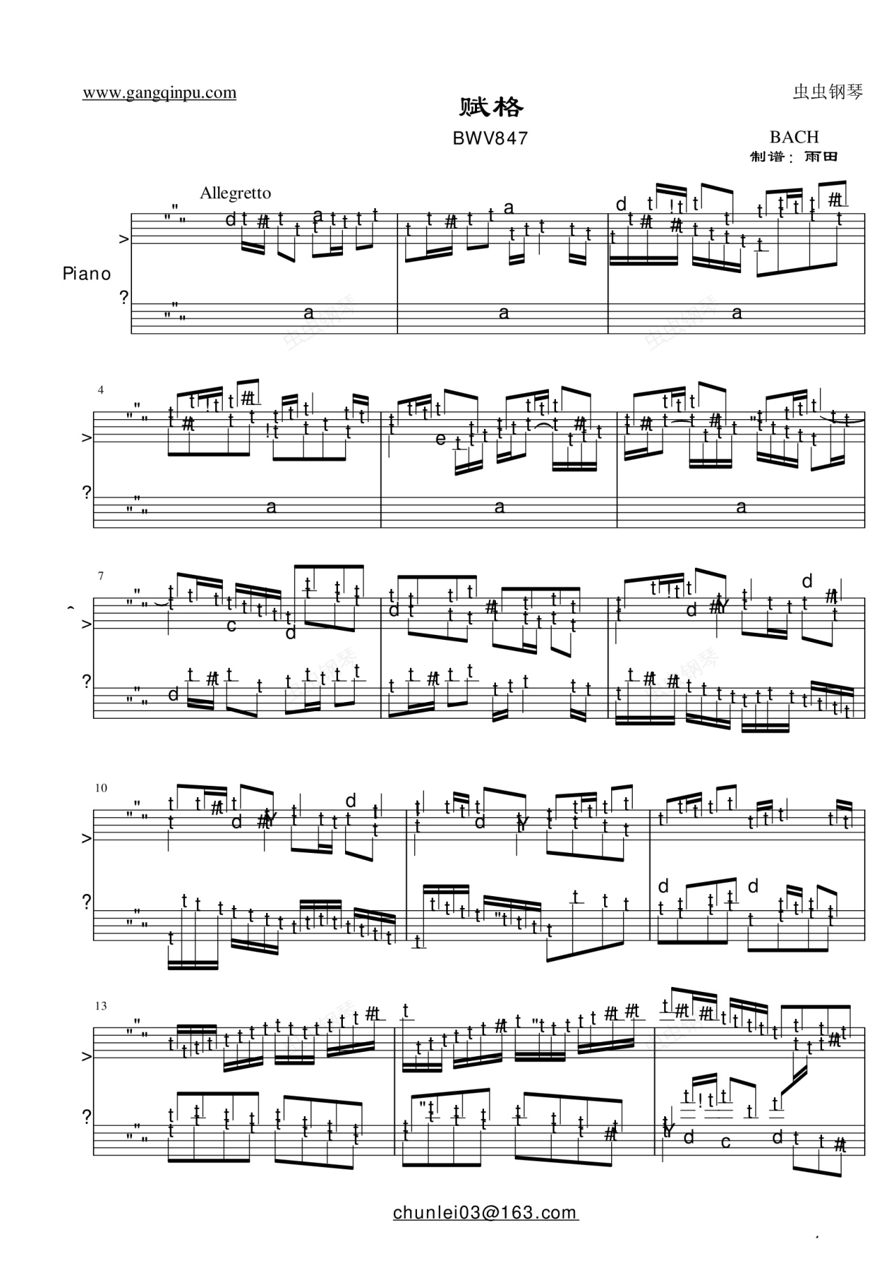钢琴谱:平均律——BWV847 赋格
