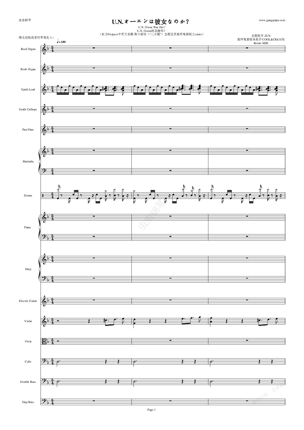 钢琴谱:【东方】【前方高能】【鬼畜】U.N.オーエンは彼女なのか?