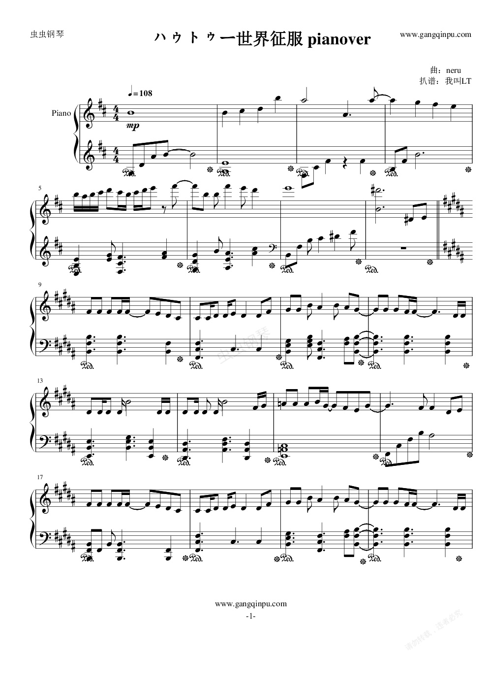 钢琴谱:【鏡音リンレン】how to世界征服 piano ver.