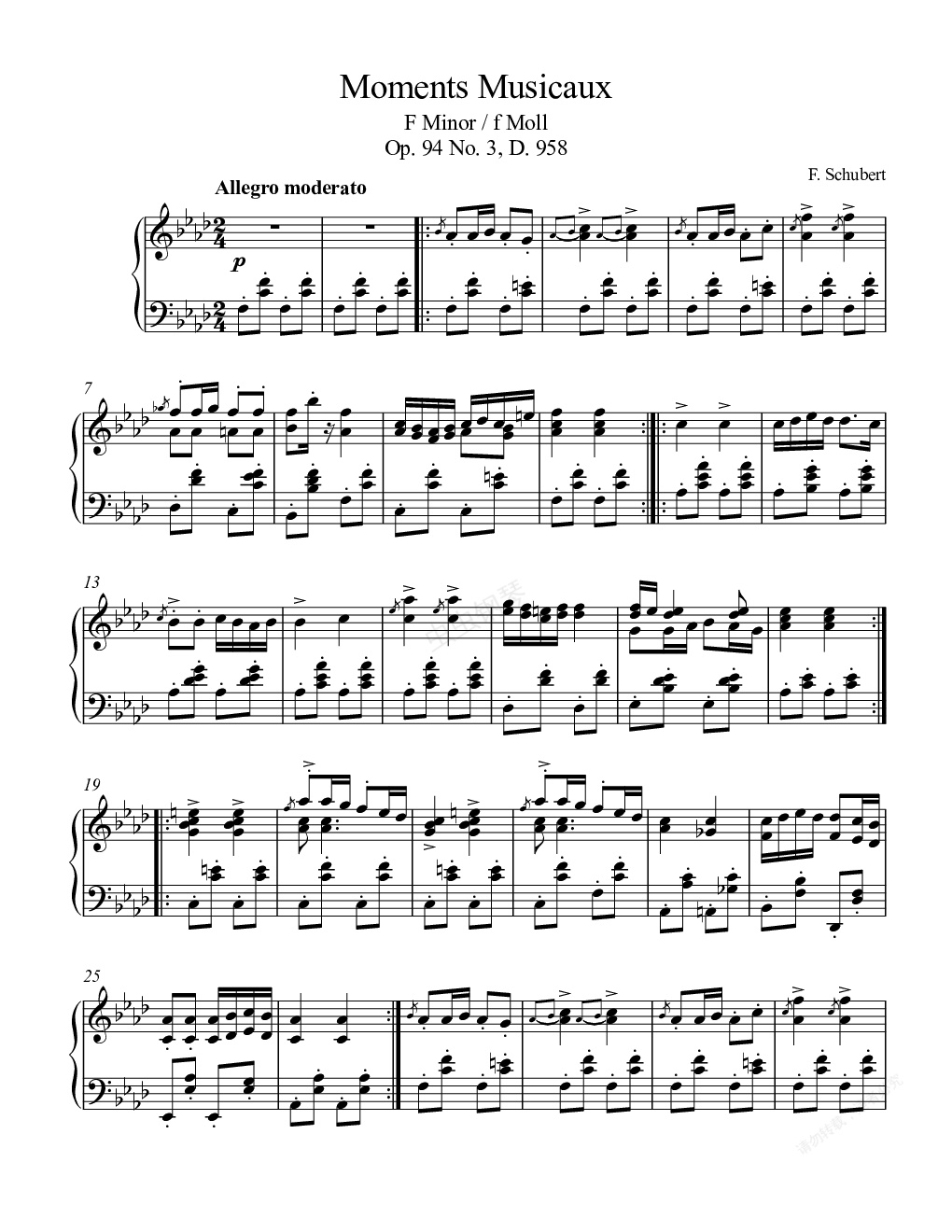钢琴谱:Moments Musicaux(音乐瞬间)