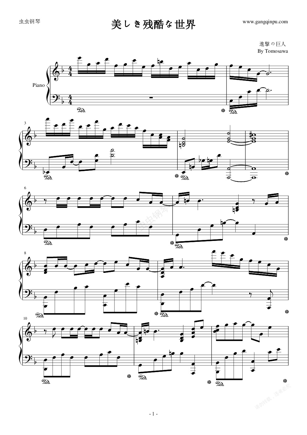 钢琴谱:【进击的巨人ED】美しき残酷な世界