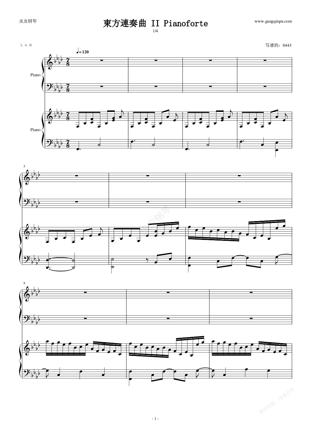 钢琴谱:東方連奏曲 II Pianoforte 第一部分