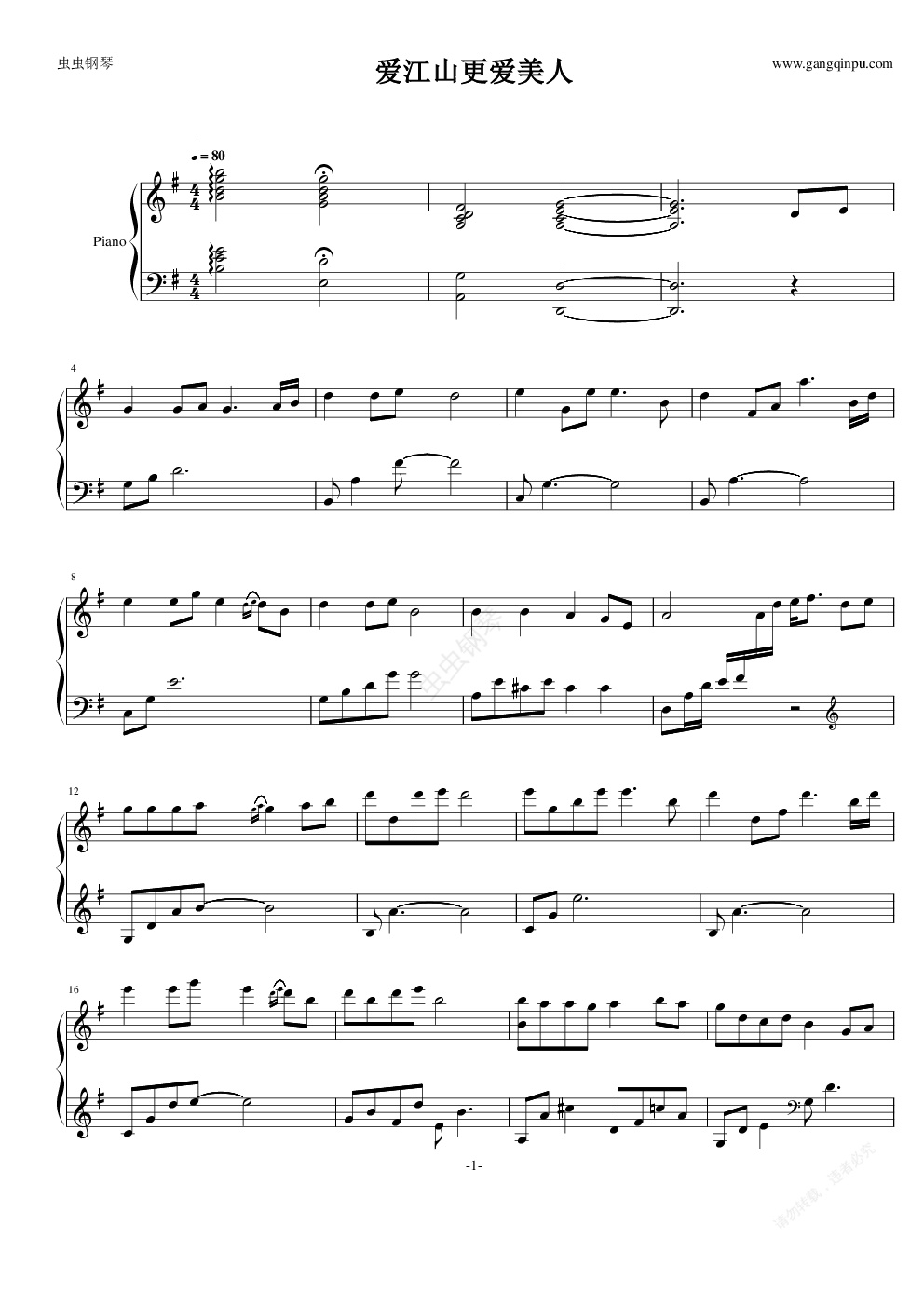 钢琴谱:爱江山更爱美人-钢琴版