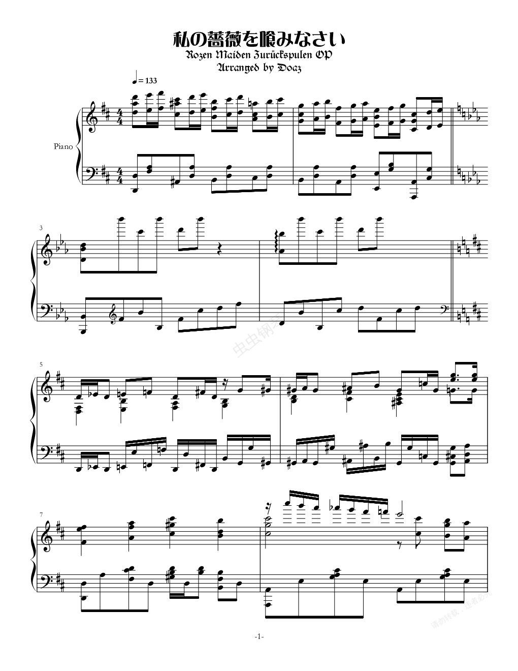 钢琴谱:【蔷薇少女】私の薔薇を喰みなさい