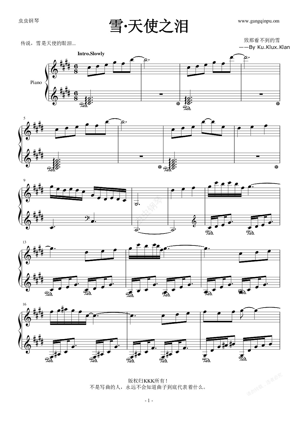 钢琴谱:雪·天使之泪(2013-8 Remix)