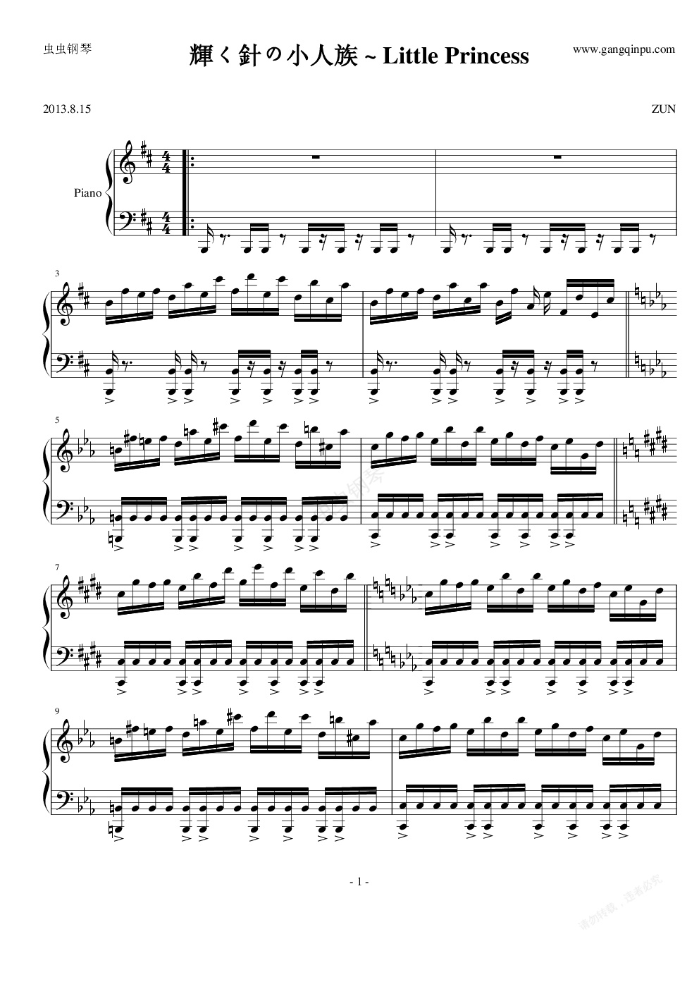 钢琴谱:【HARD】輝く針の小人族 ~ Little Princess