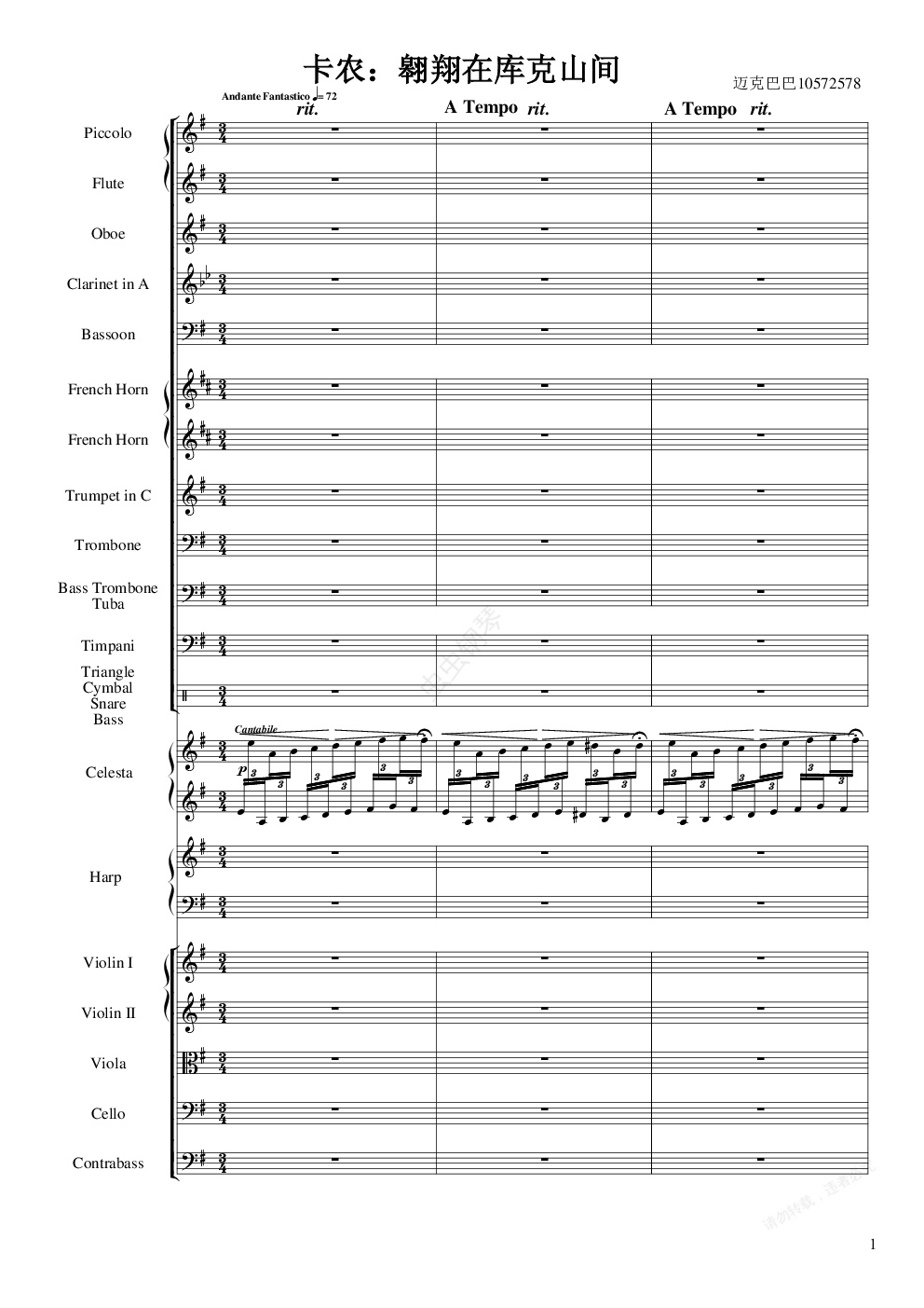 钢琴谱:交响版卡农:翱翔在库克山间