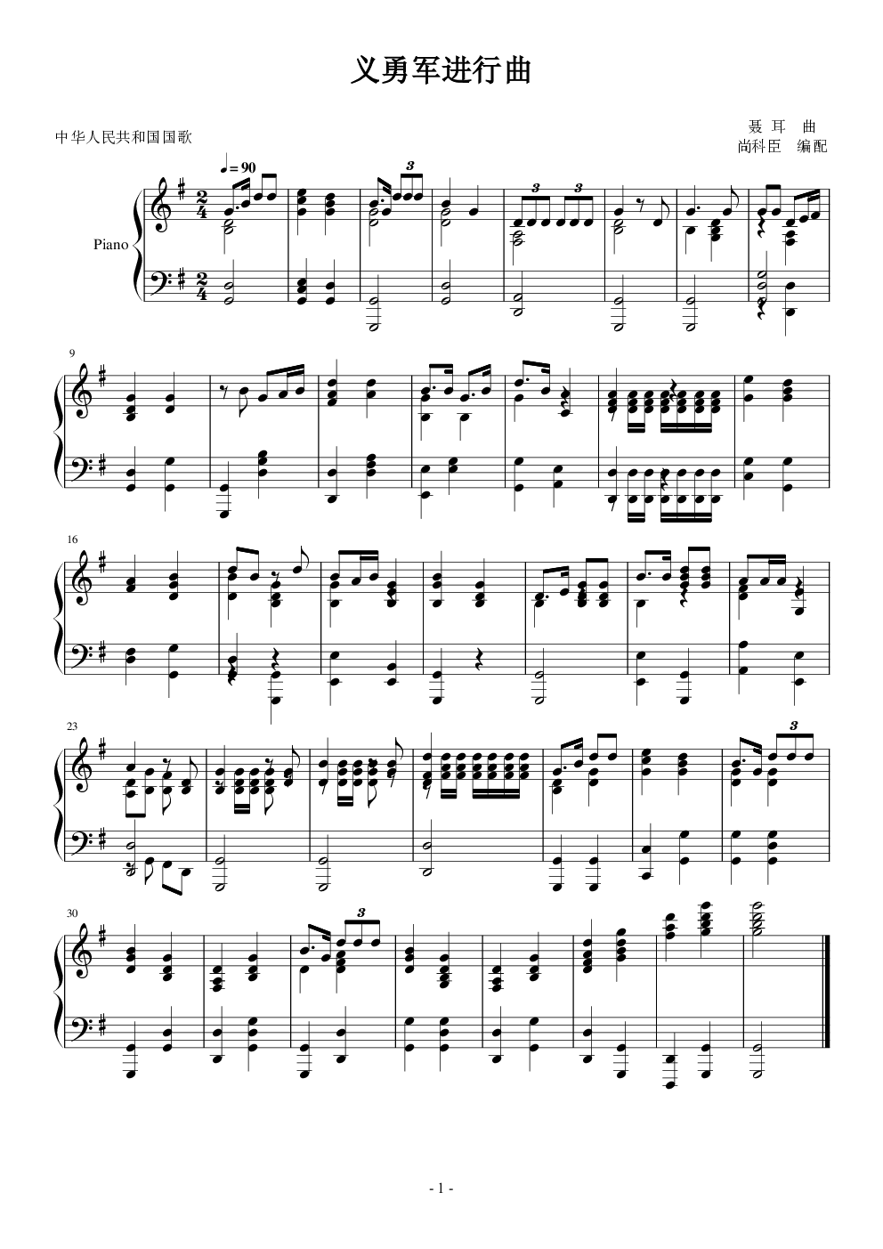 钢琴谱:国歌 义勇军进行曲
