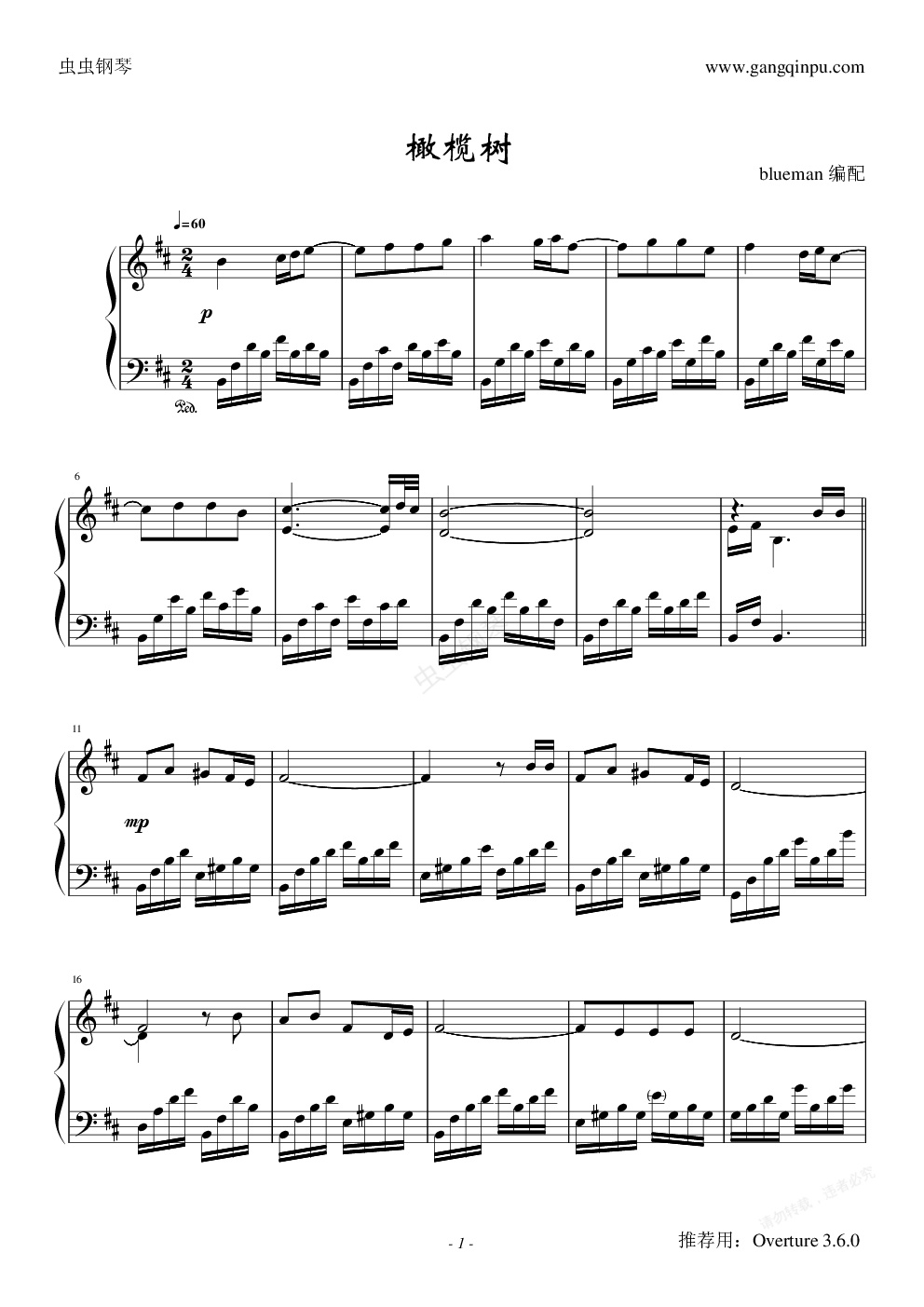钢琴谱:橄榄树