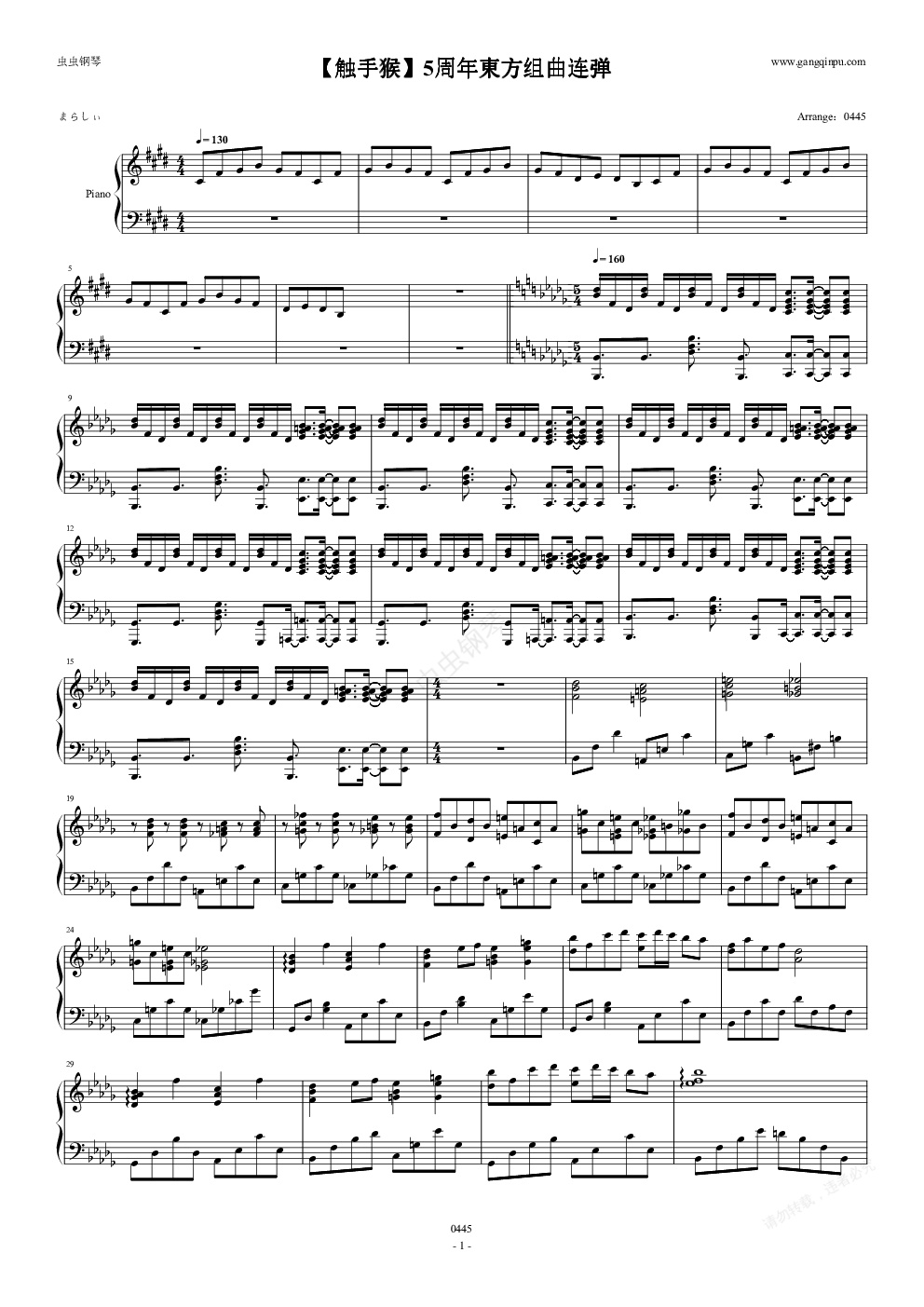 钢琴谱:【触手猴】5周年東方组曲连弹