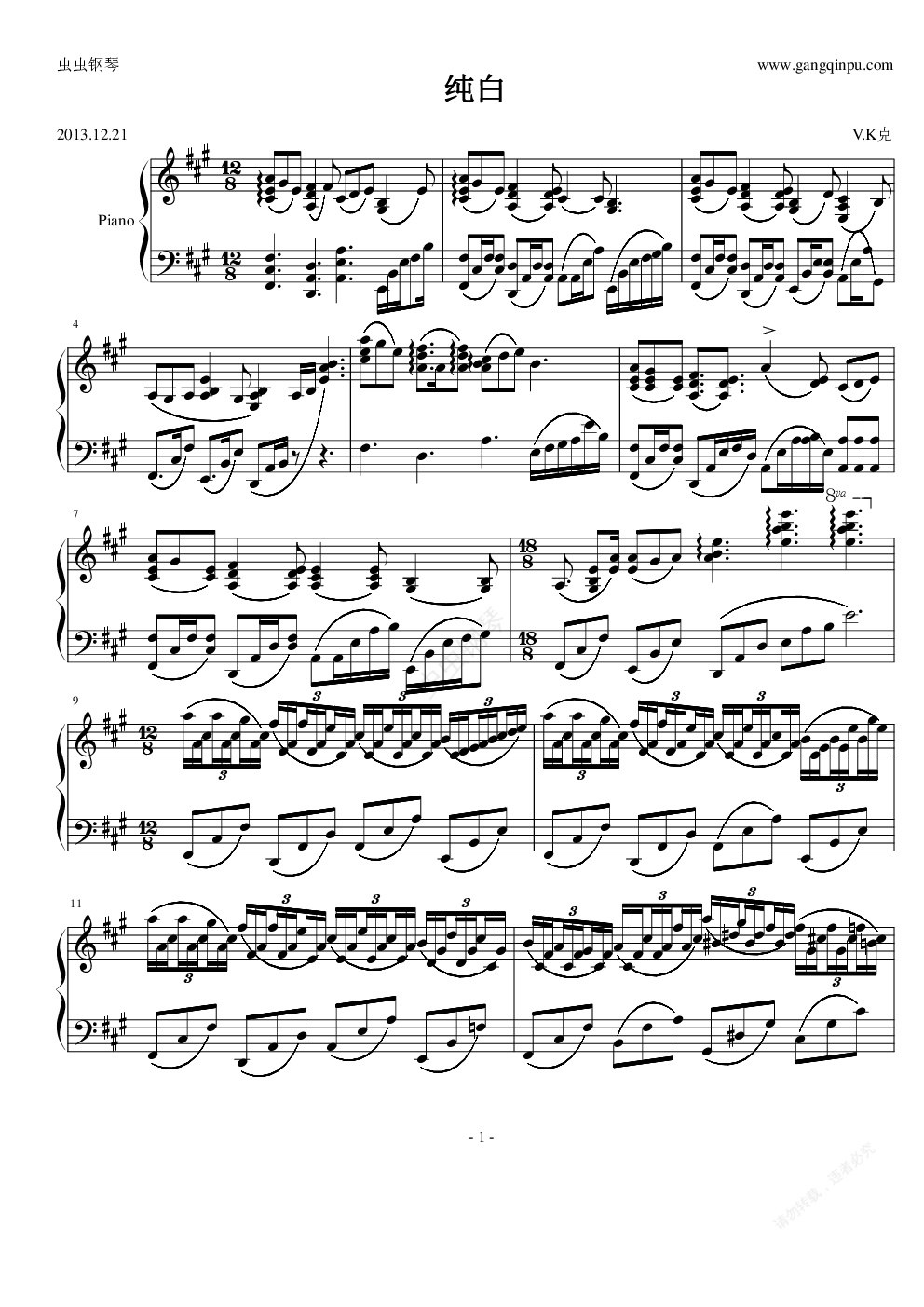作为一个自学钢琴的学生听写这个谱子确实有些困难。。断断续续大约用了一个月,应该是非常接近原声了,实在是竭尽全力,如有谬误,敬请指教,我会改正谱子的
