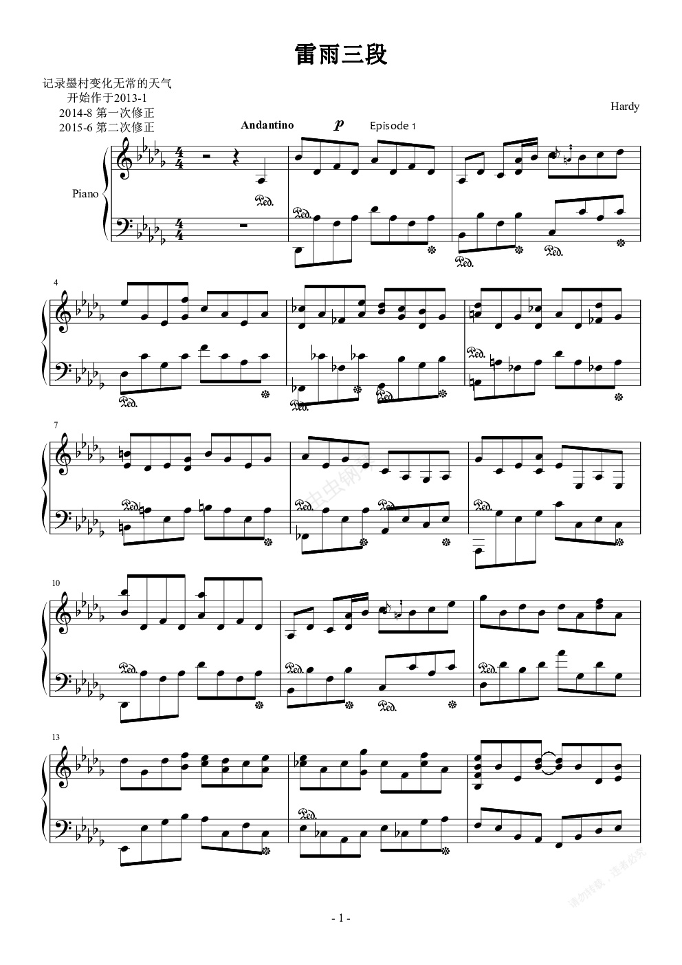 此曲作于13年墨尔本,15年完善了一下,分为三个段落,记录一个由晴天-->阴天-->雷雨的变化过程
