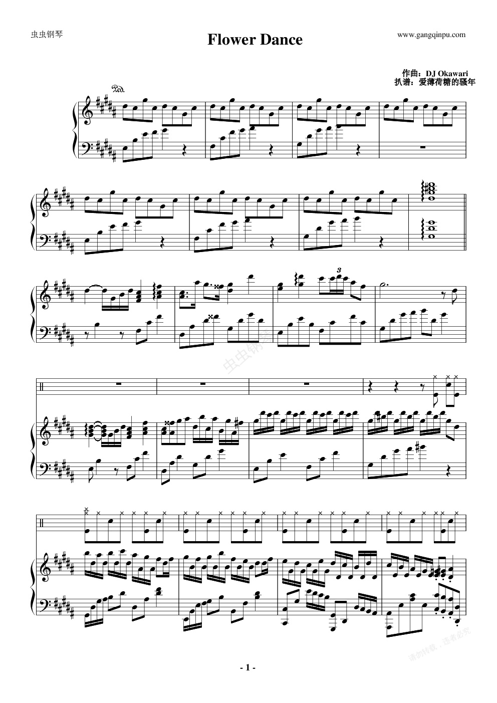 钢琴谱:Flower dance钢琴小提琴架子鼓合奏谱(原版)