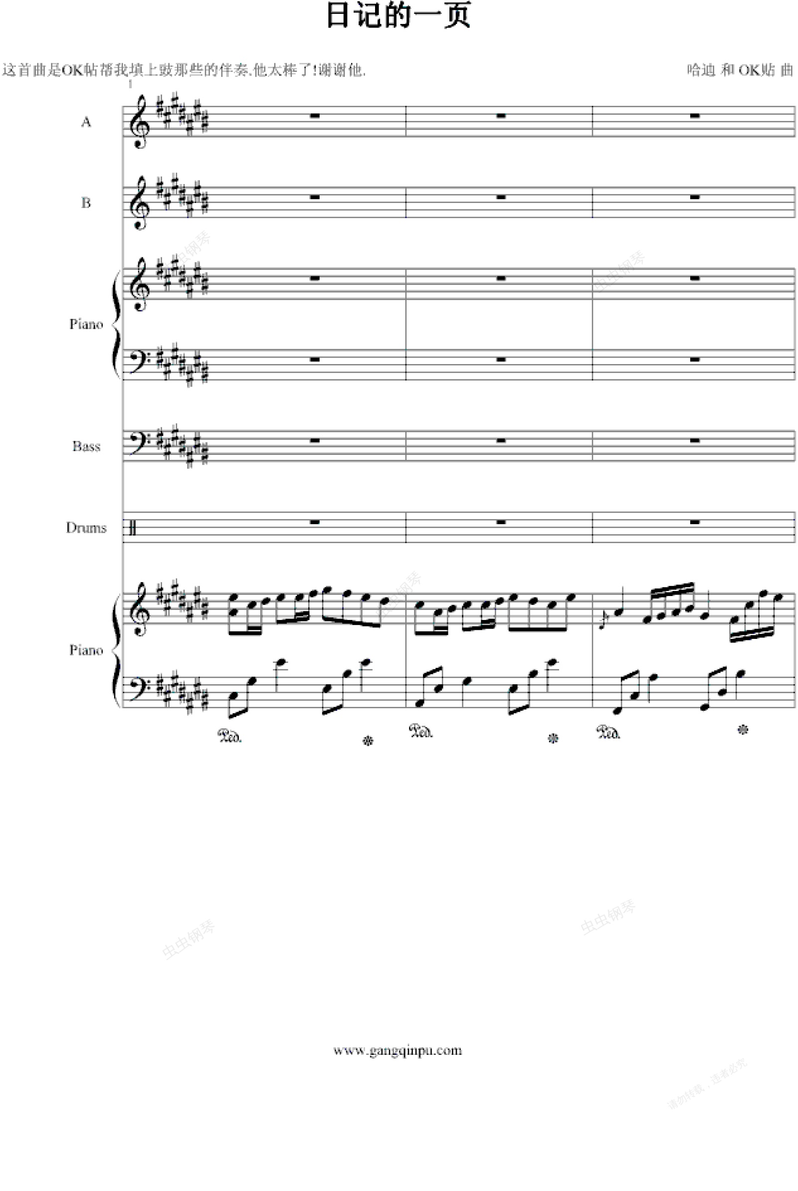 钢琴谱:日记的一页