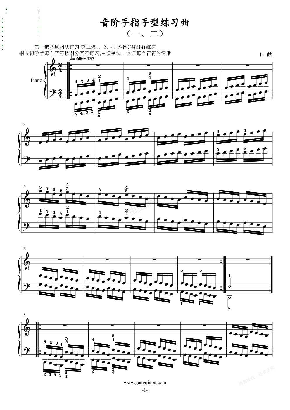 钢琴谱:音阶手指手型练习曲