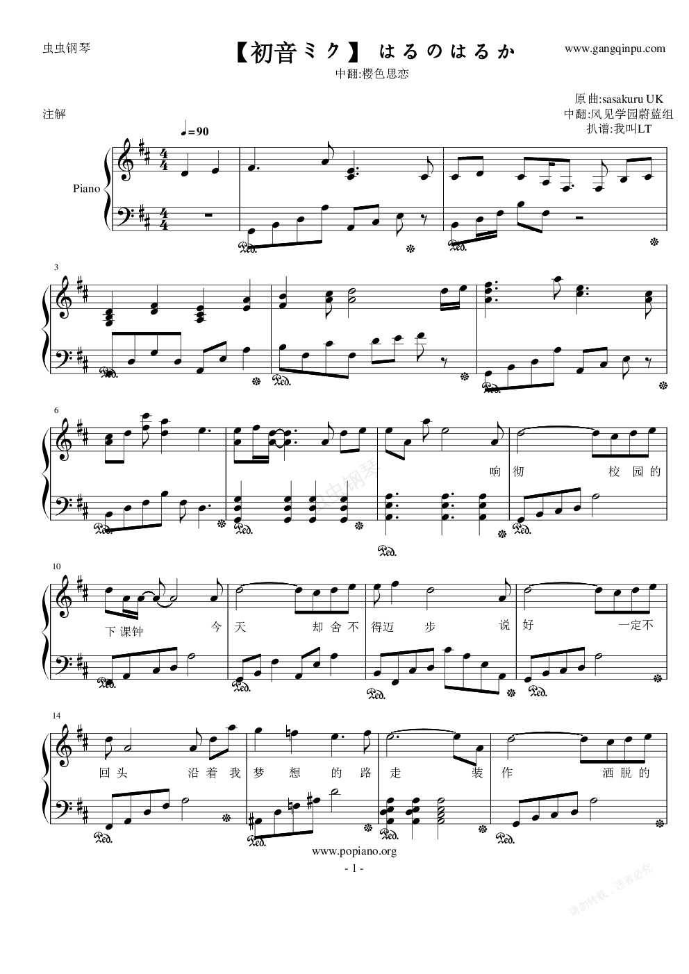钢琴谱:【初音ミク】 はるのはるか(樱色思恋)