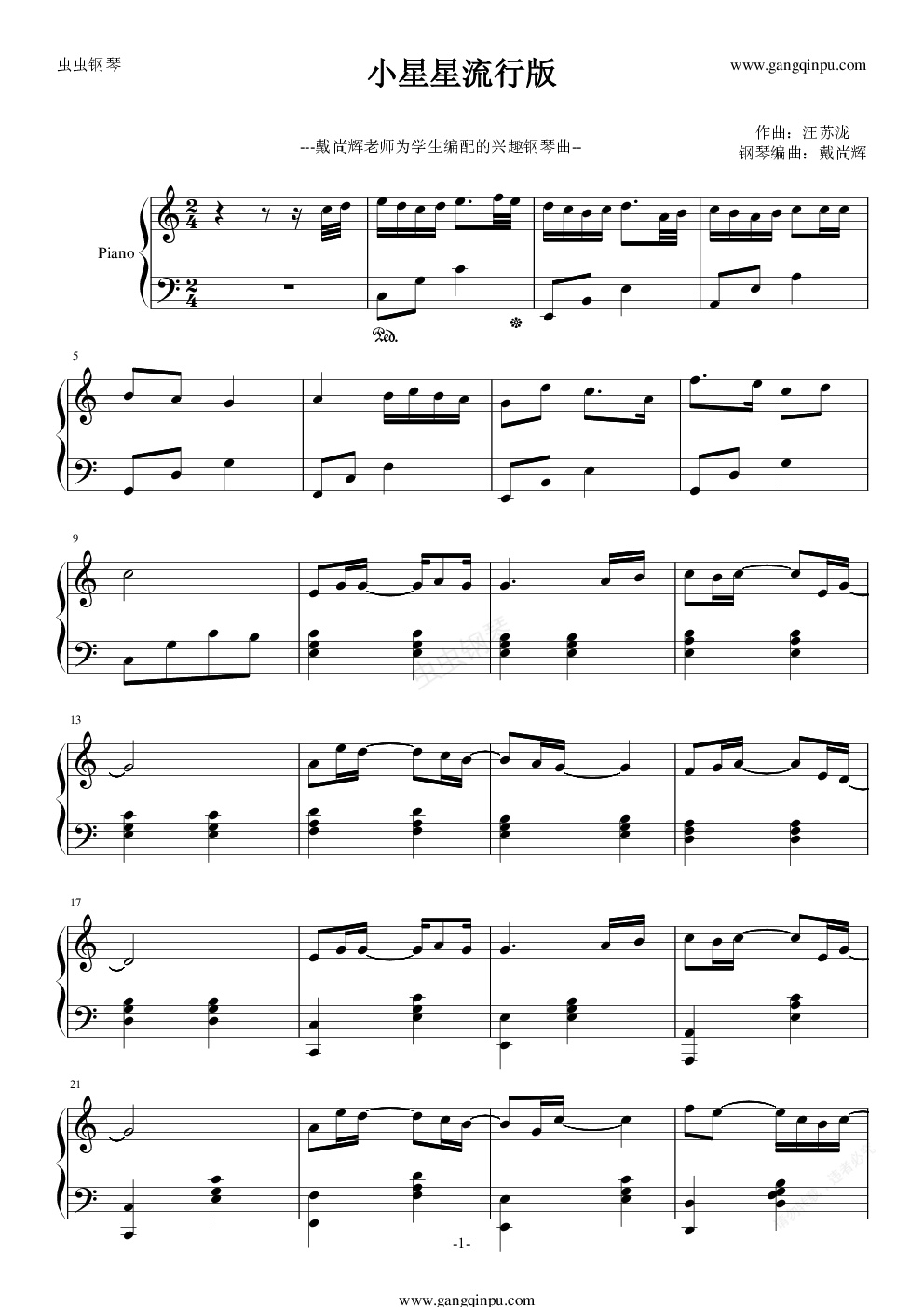 钢琴谱:小星星汪苏泷版